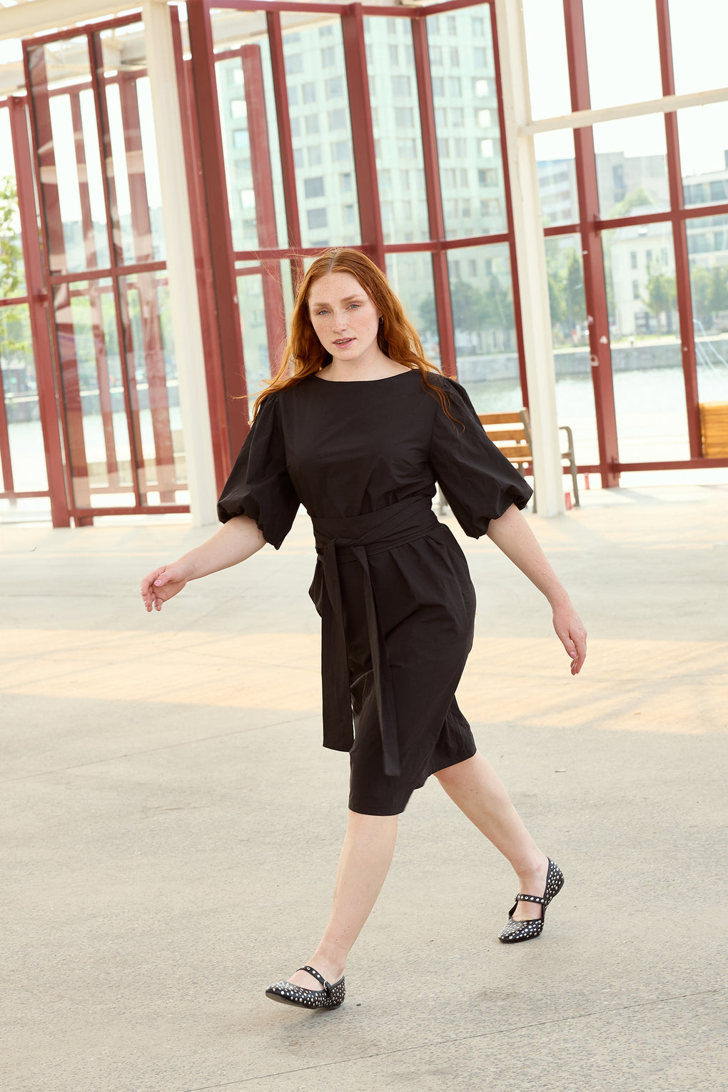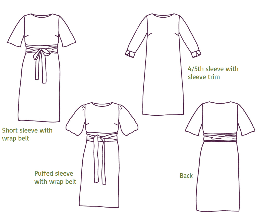 The short sleeve from the original pattern is still included but there is a new, mid-length puff sleeve which provides a fresh, modern feature.  You'll also love the ⅘ straight sleeve with a playful V-shaped overlapping cuff band.  You can style Pippa with your own belt, or opt for the new wrap tie, which is sewn into the side seam.  It's also long enough to wrap around the waist twice which is such a flattering look.