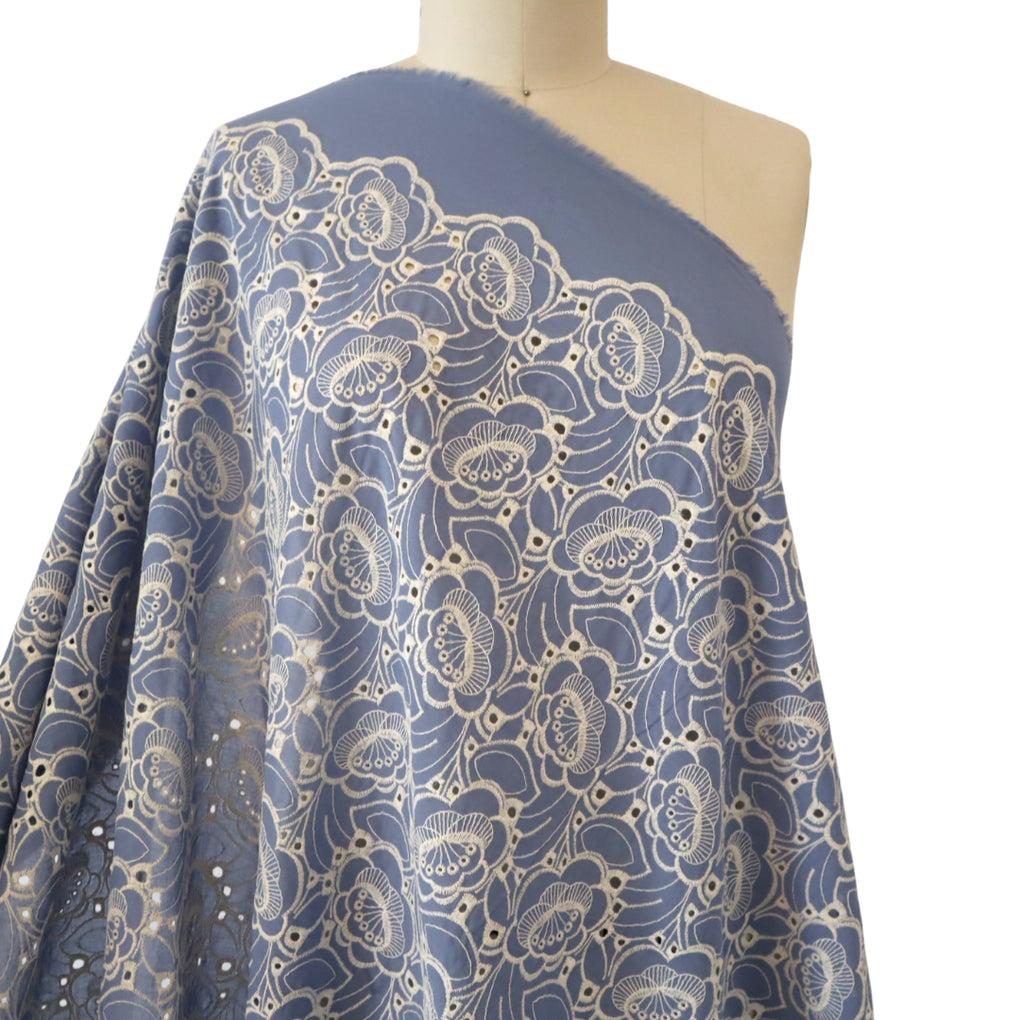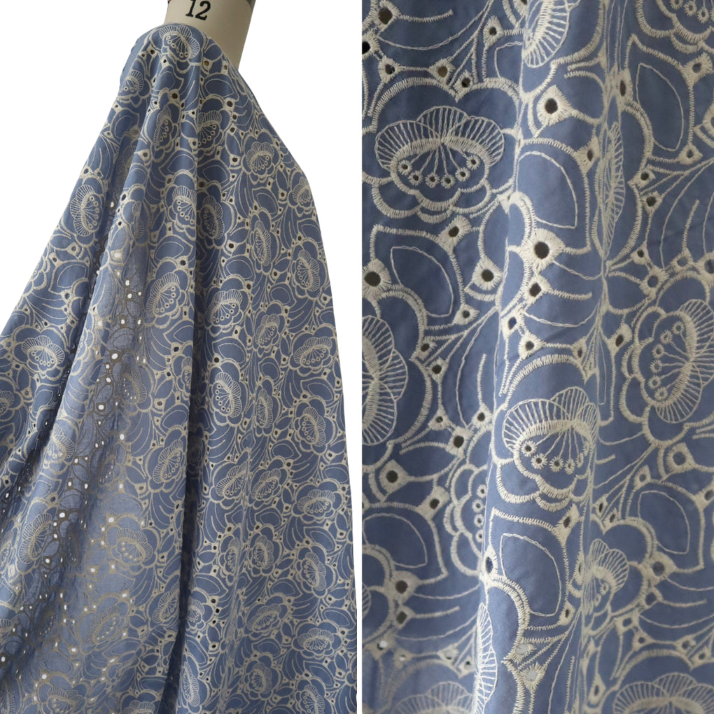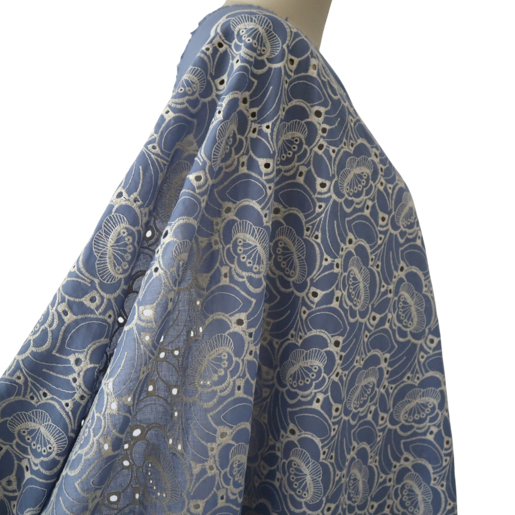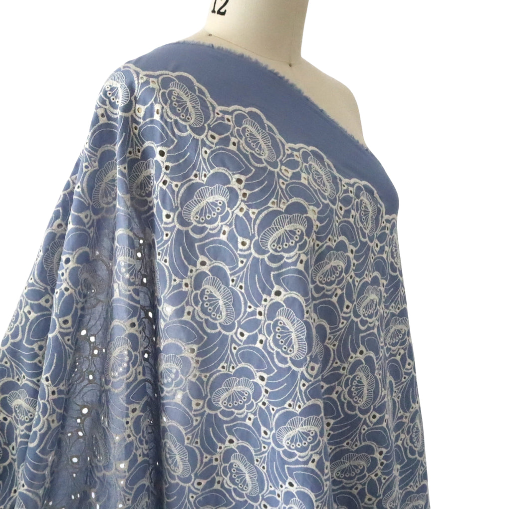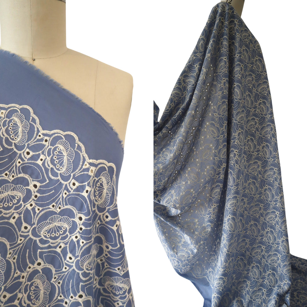 'Amaya' ~ Embroidered Cotton Poplin | Blue