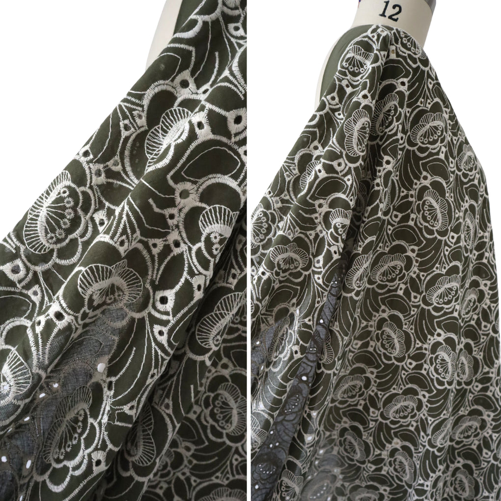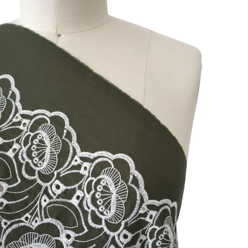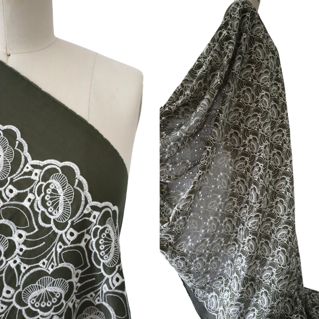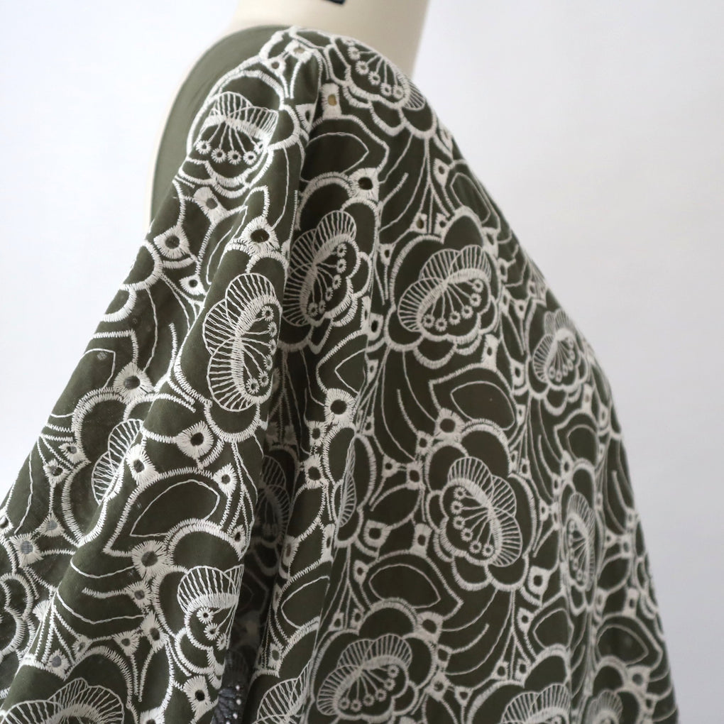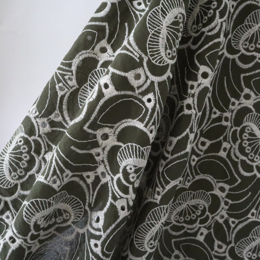 'Amaya' ~ Embroidered Cotton Poplin | Deep Olive