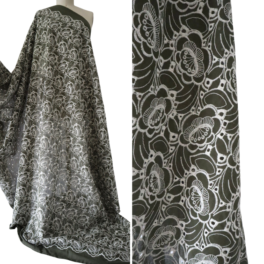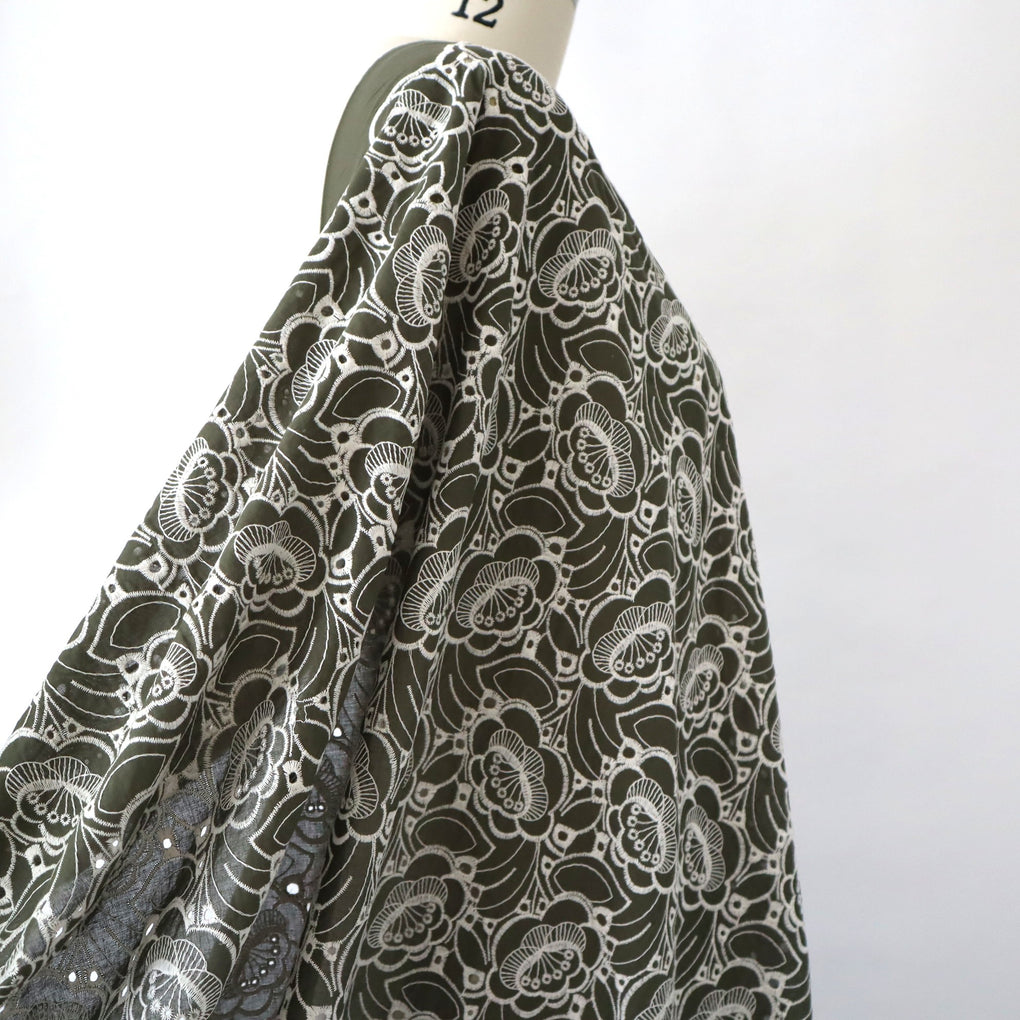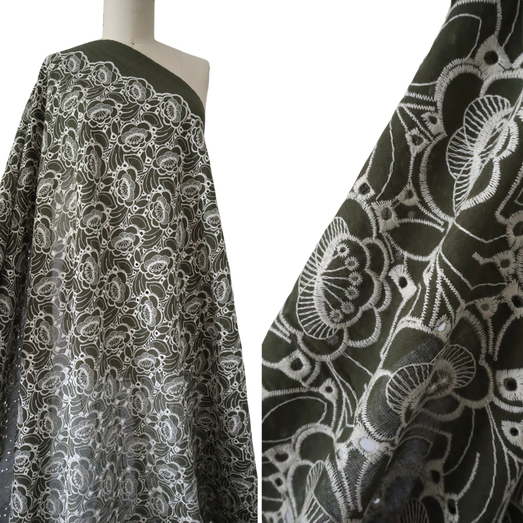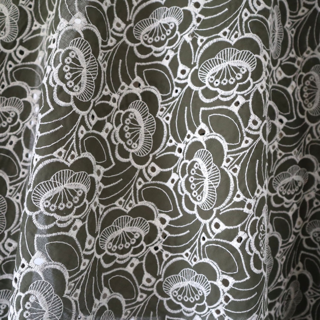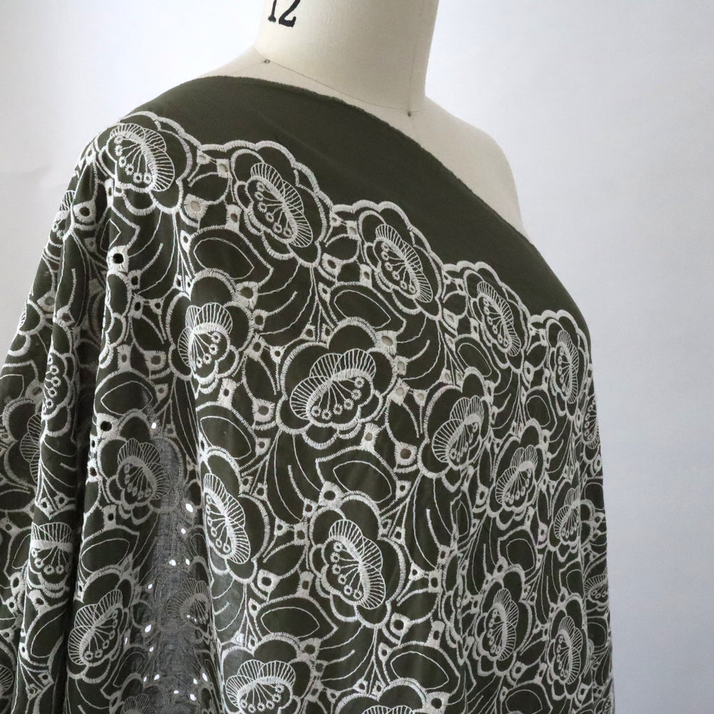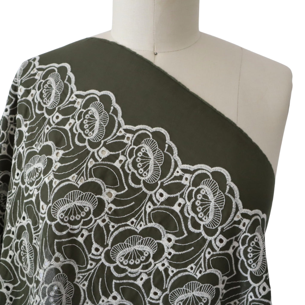 'Amaya' ~ Embroidered Cotton Poplin | Deep Olive