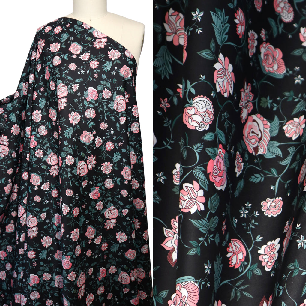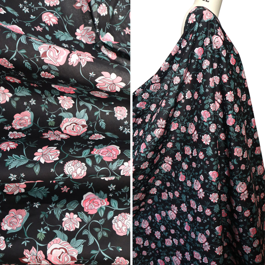 Artlux ~ 'Edith ~ Black | Pink' Luxury Cotton Lawn ~ Made in Italy