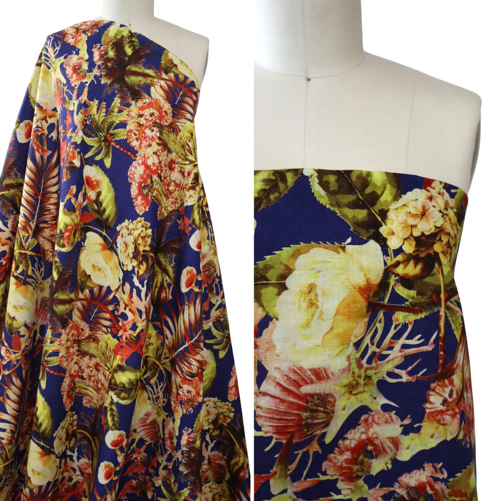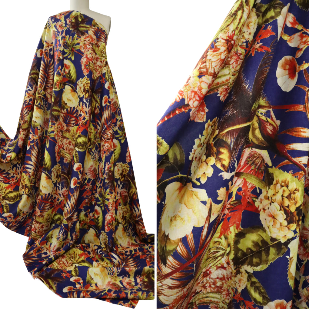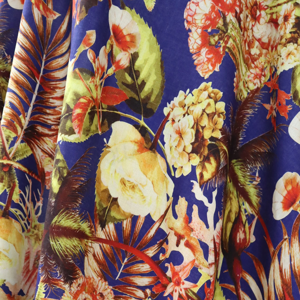EXCLUSIVE 90% Linen 10% Silk – 'Viva Mexico' - Deep Cobalt