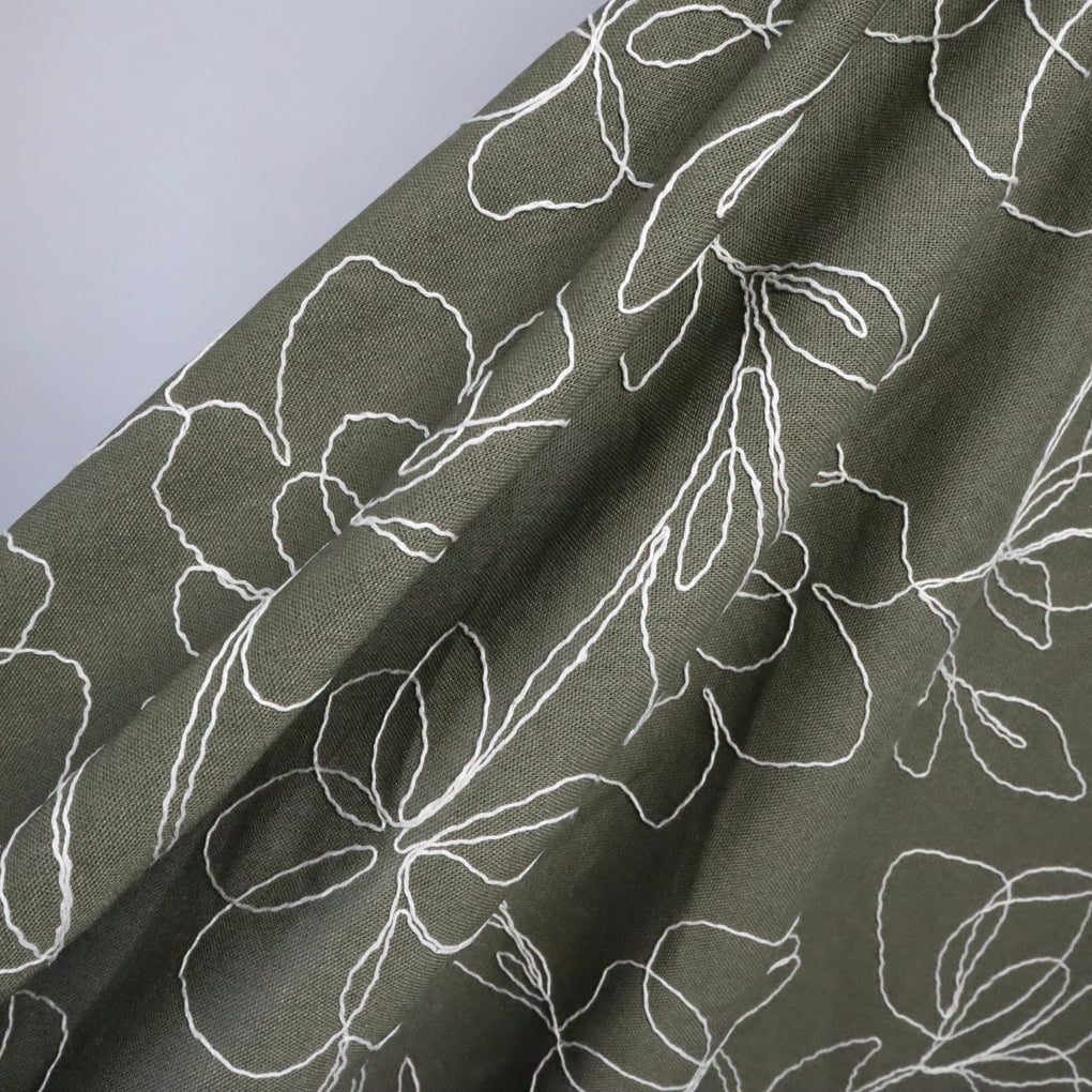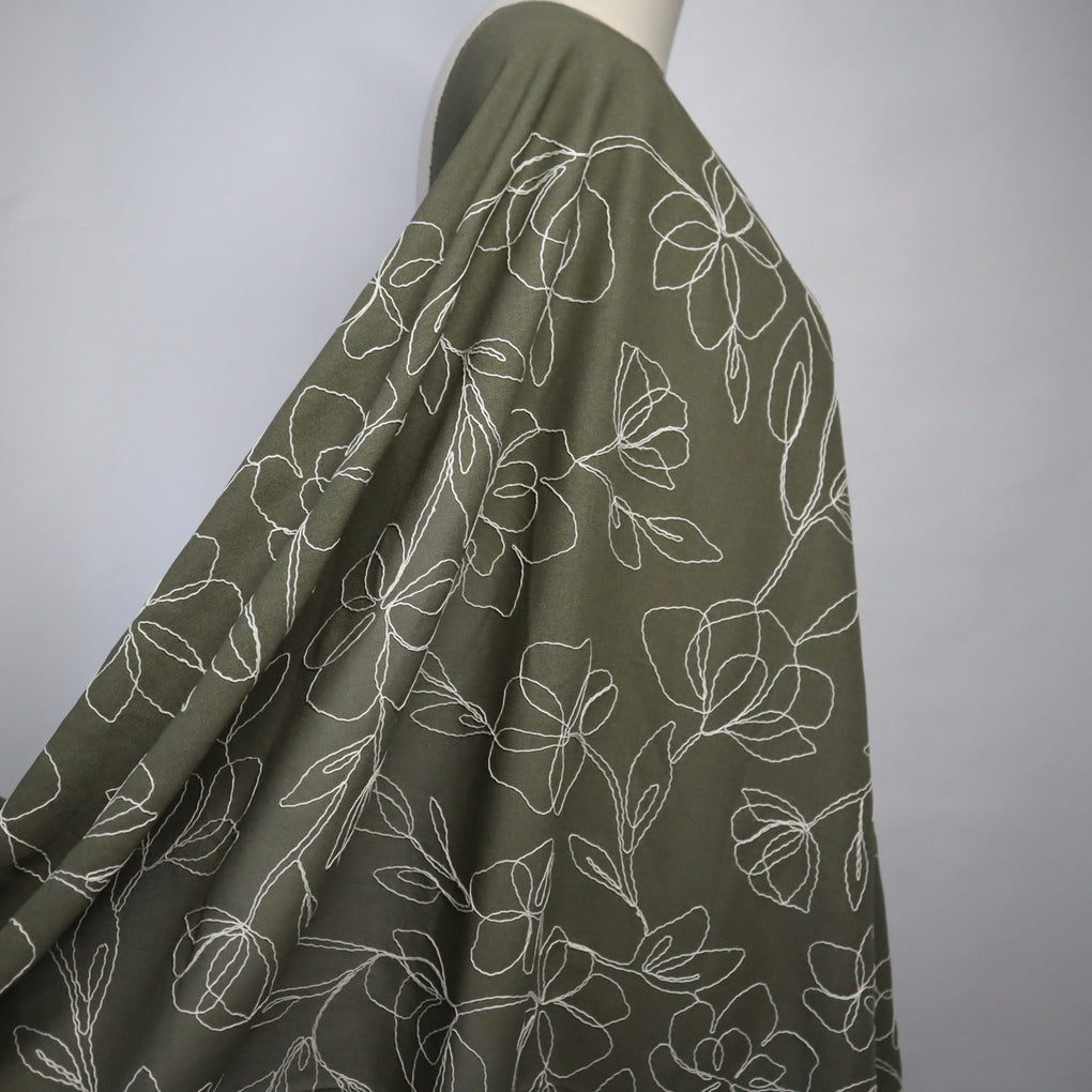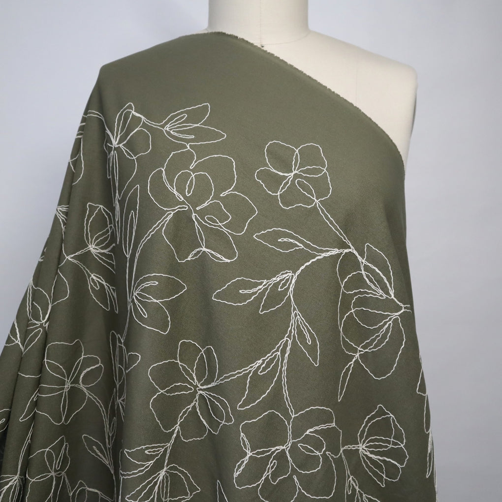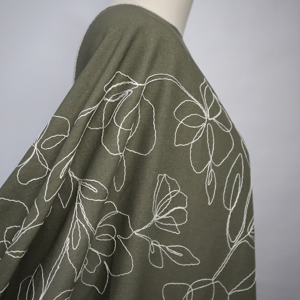 'Hadley' Embroidered Linen Viscose ~ Olive Grove