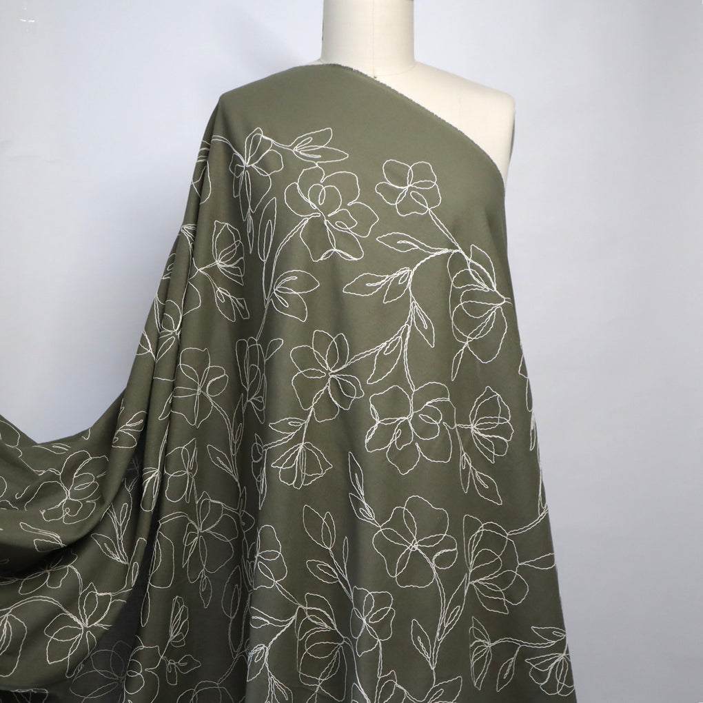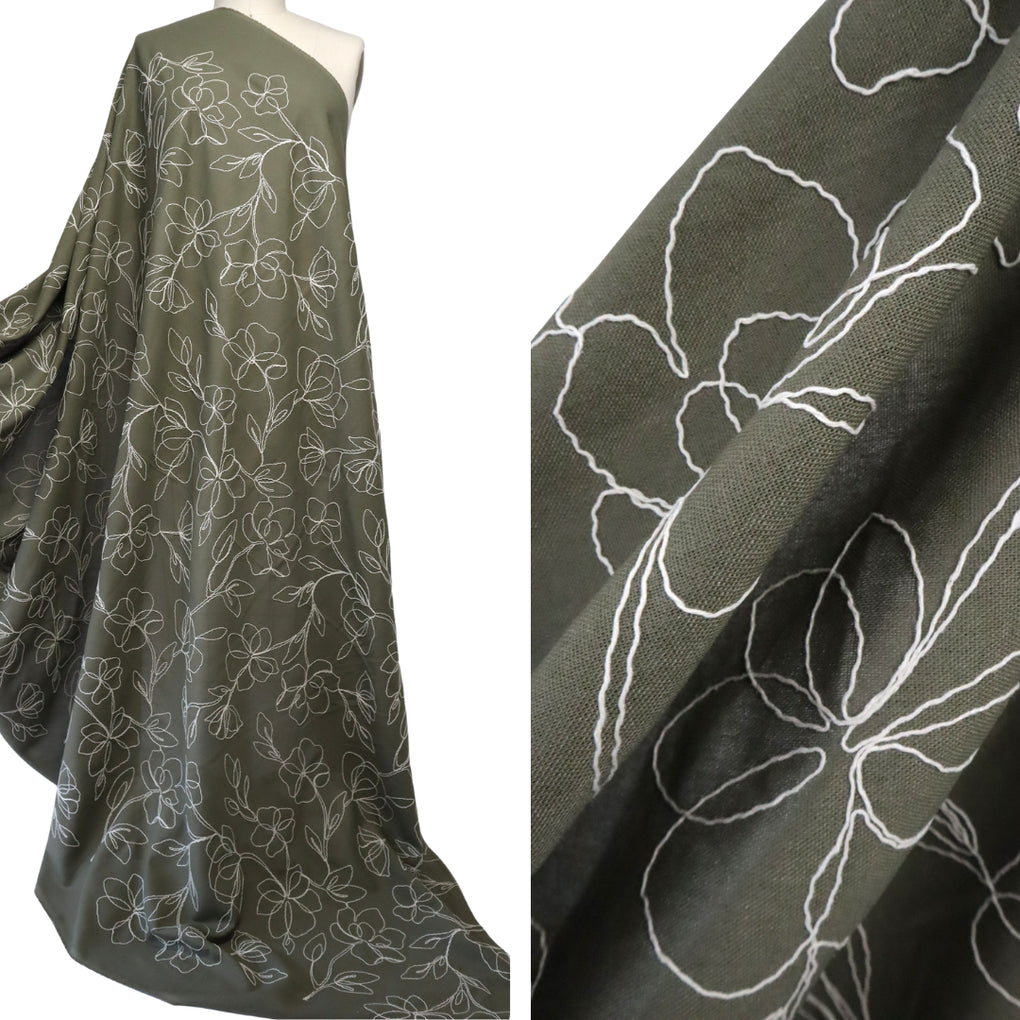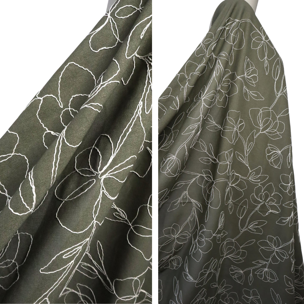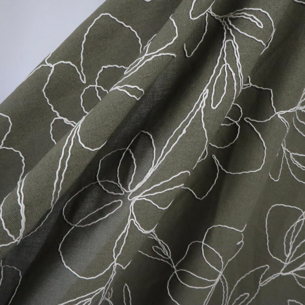 'Hadley' Embroidered Linen Viscose ~ Olive Grove