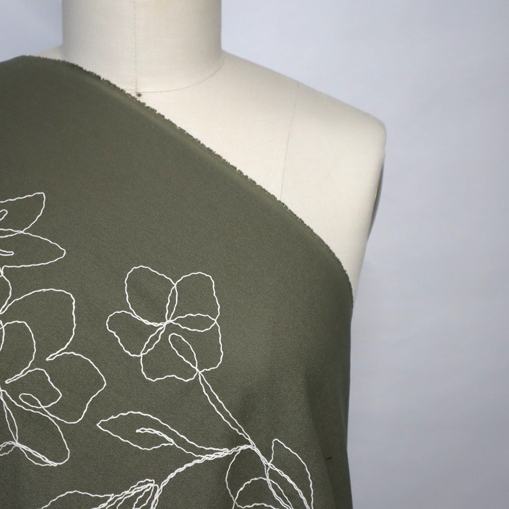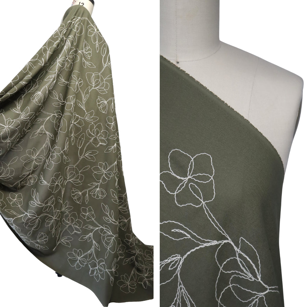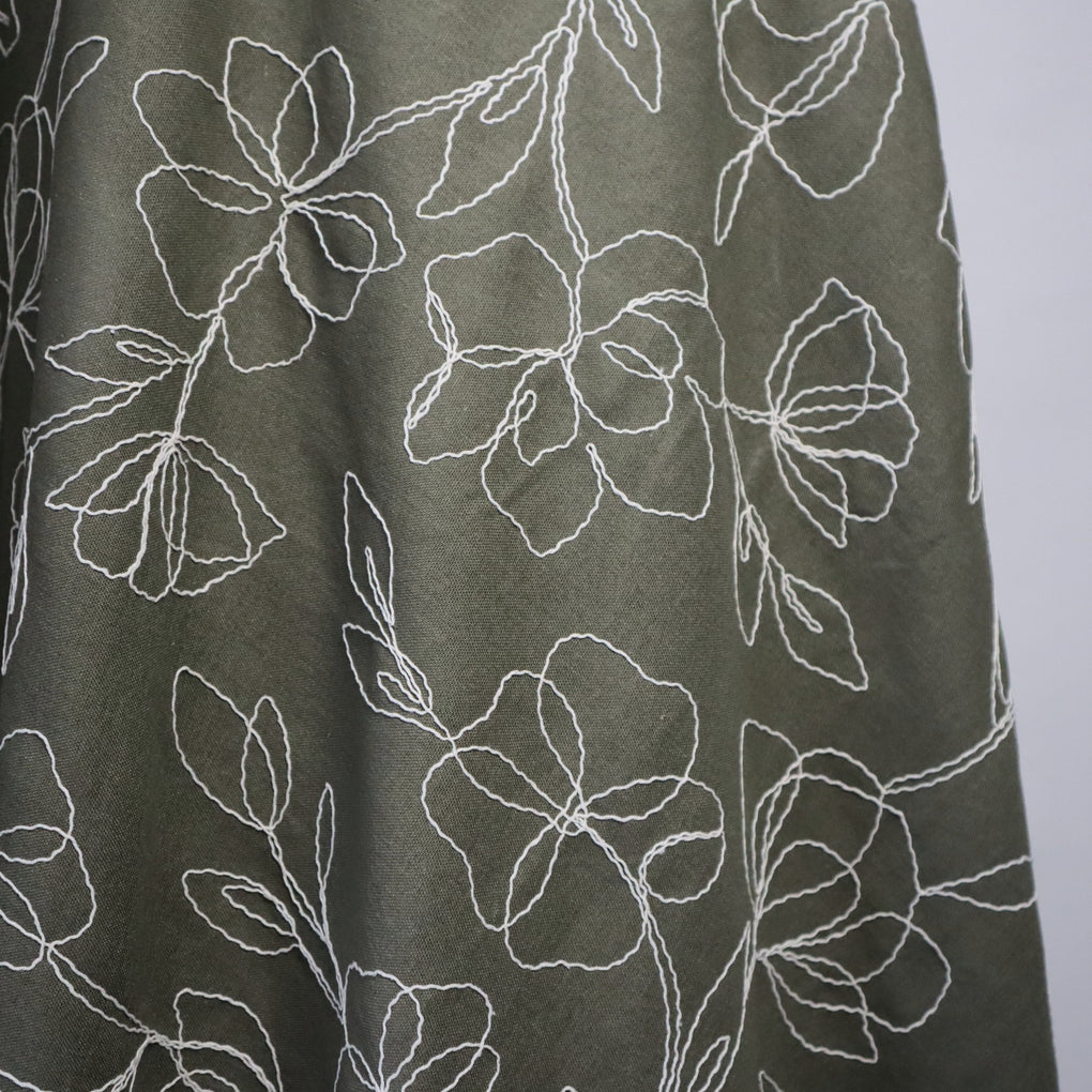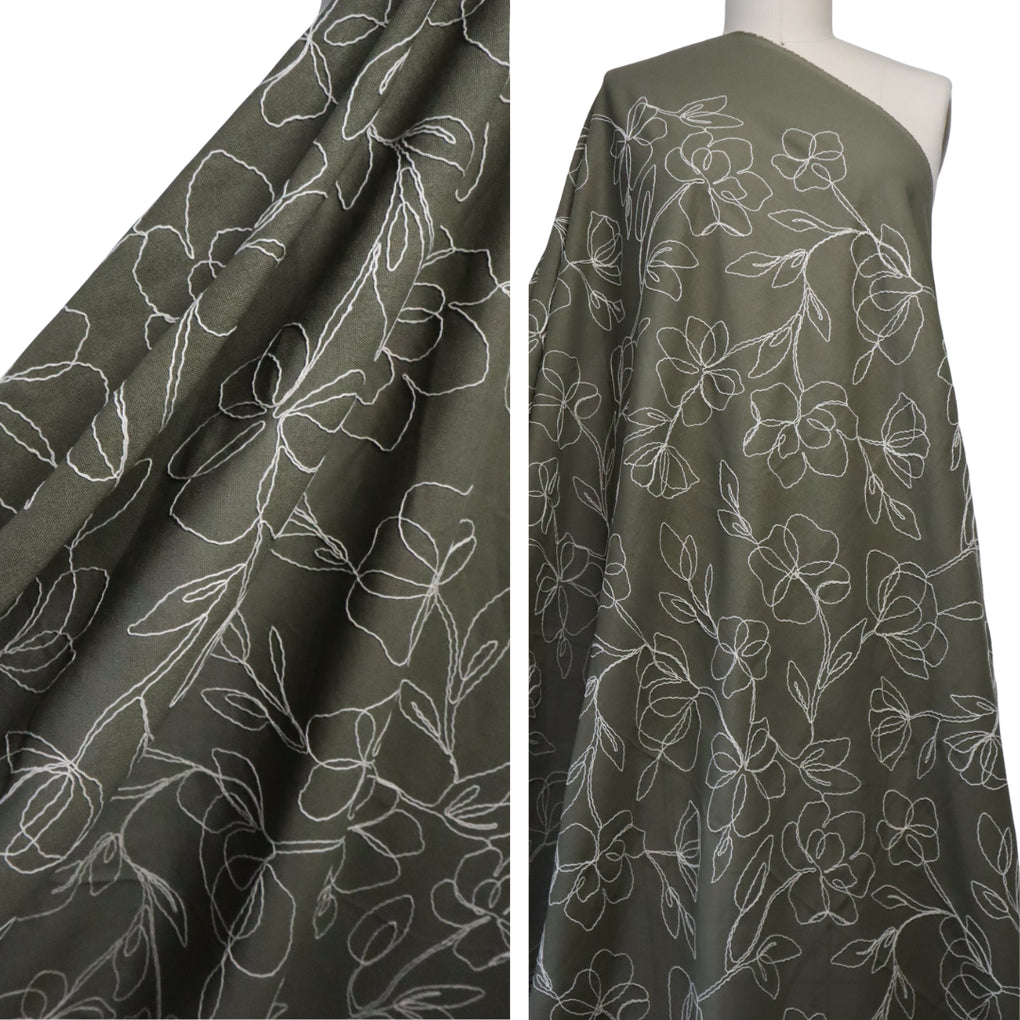 'Hadley' Embroidered Linen Viscose ~ Olive Grove