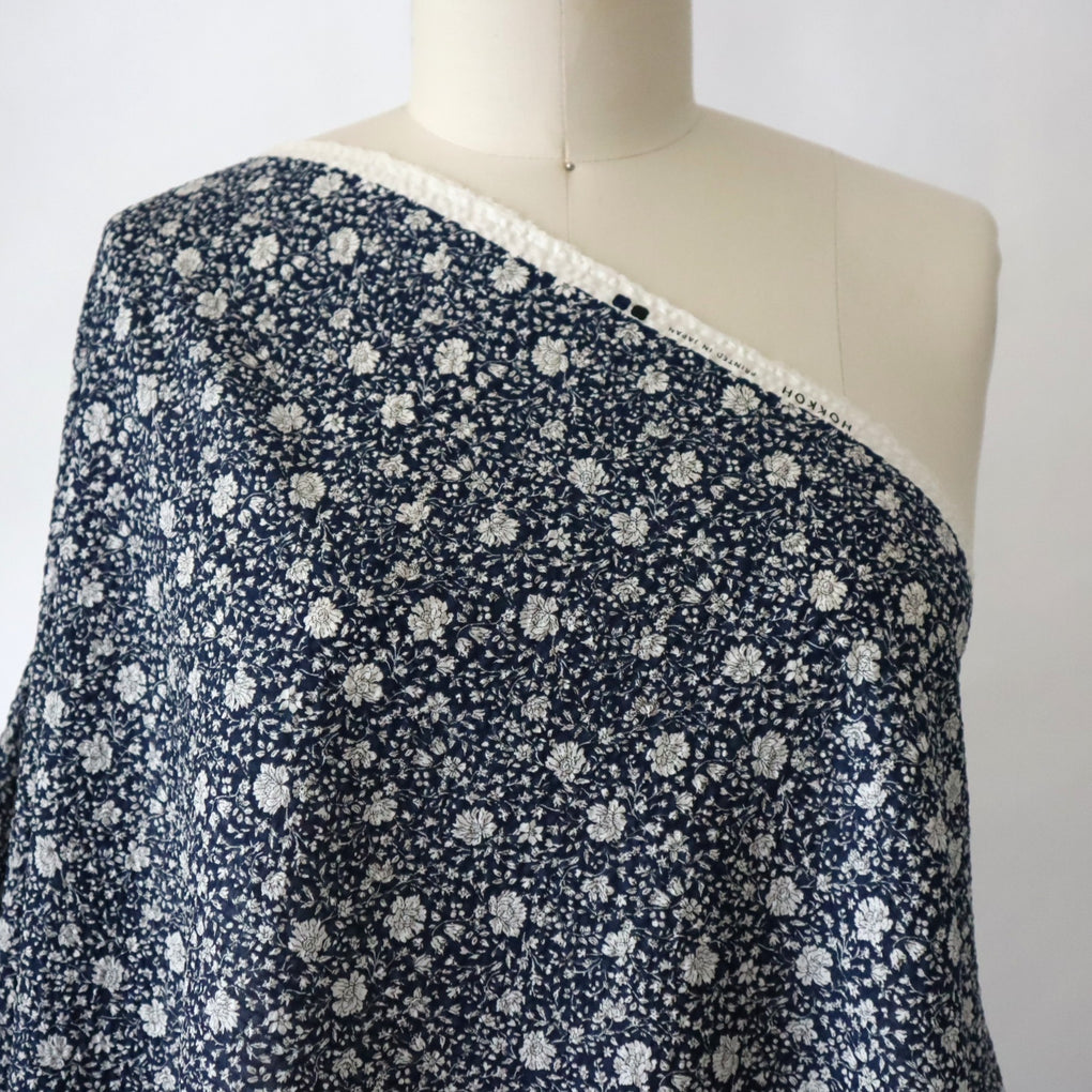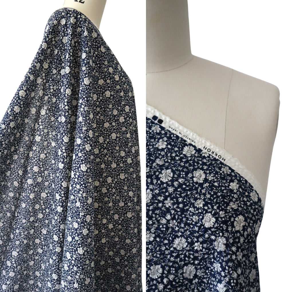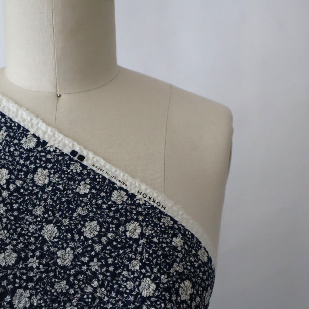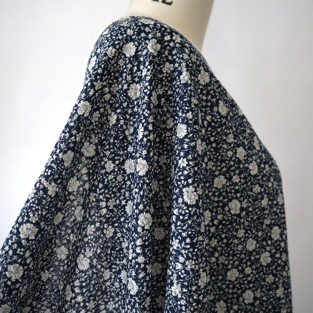'Asuka' is a gorgeous print on a wonderful cloth! The rumpled ‘lines’ are narrow, and the profile is low, making this perfect for a range of garments. 'Asuka' is a feminine, simple floral design, and it comes in two colourways: Cornflower and Navy. If you haven't tried Hokkoh seersuckers you are in for a treat. They are the best I've come across and they're perfect for keeping you cool and comfortable.