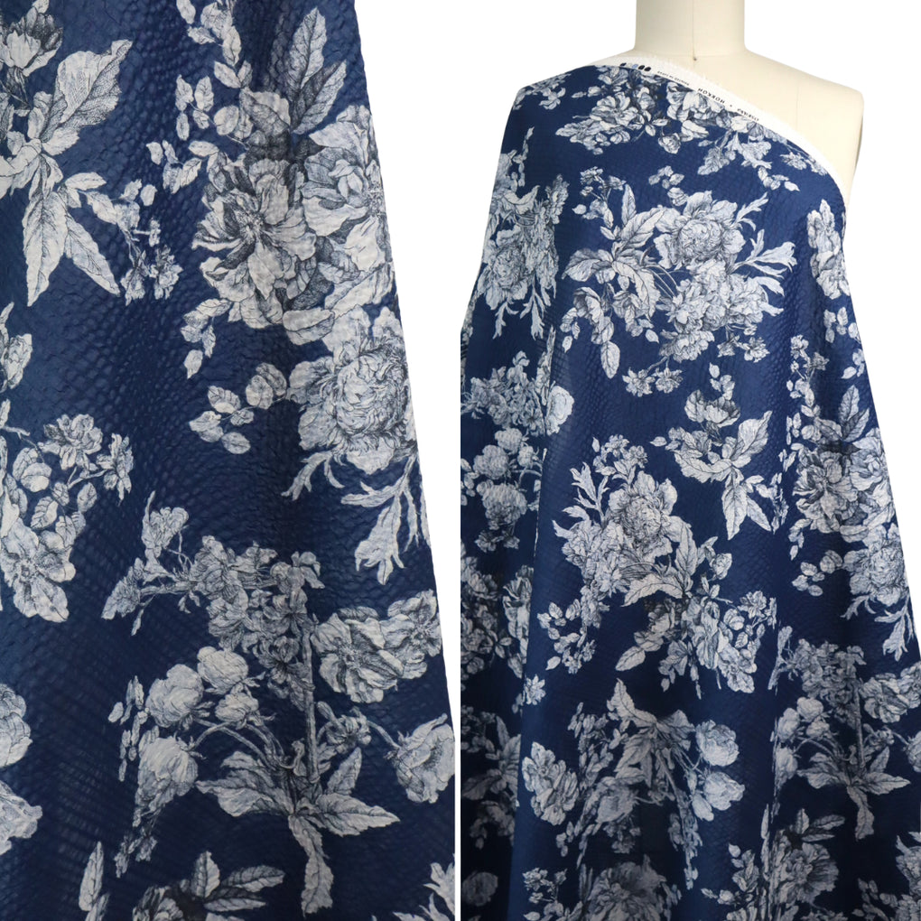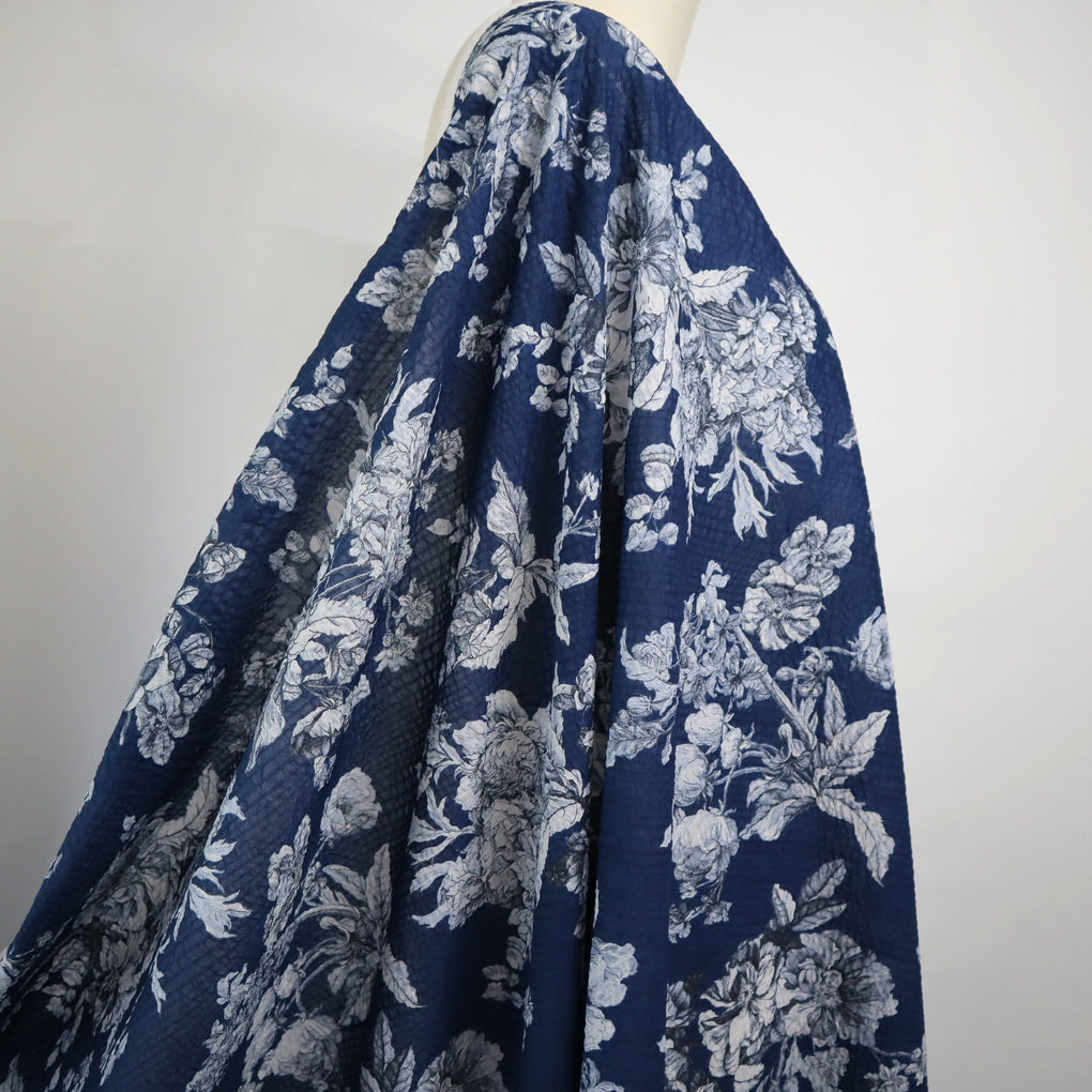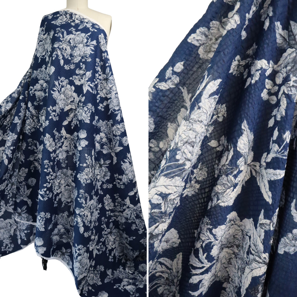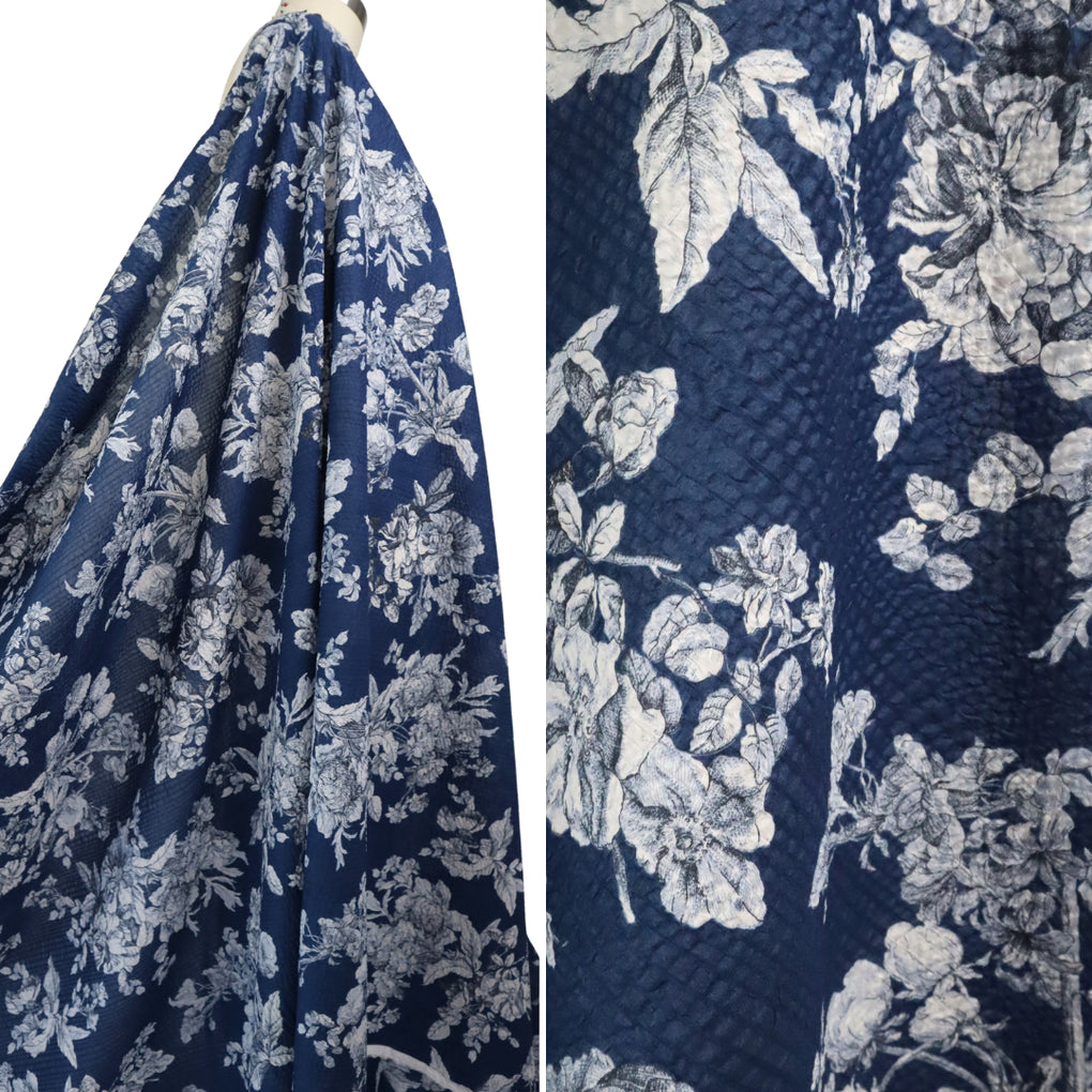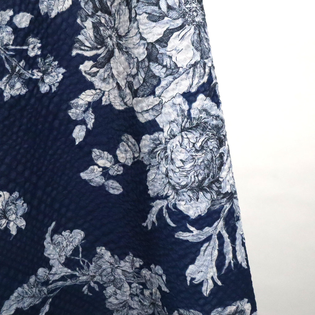 'Natsuki' is a dreamy Hokkoh seersucker. Not only is this a super soft, quality cloth, but the larger-scale floral is romantic and a unique design for a seersucker. The navy background isn't as dark as the 'Asuka' print, and the flowers and foliage are in a pencil, sketch style, with shading here and there in a bluish-grey. As per the other new Hokkoh seersuckers, the 'lines' are narrow and the profile is low, making this a cool and comfortable option for mid-summer. This is perfect for cool dresses, blouses, shirts, skirts and loose pants. Enjoy!
