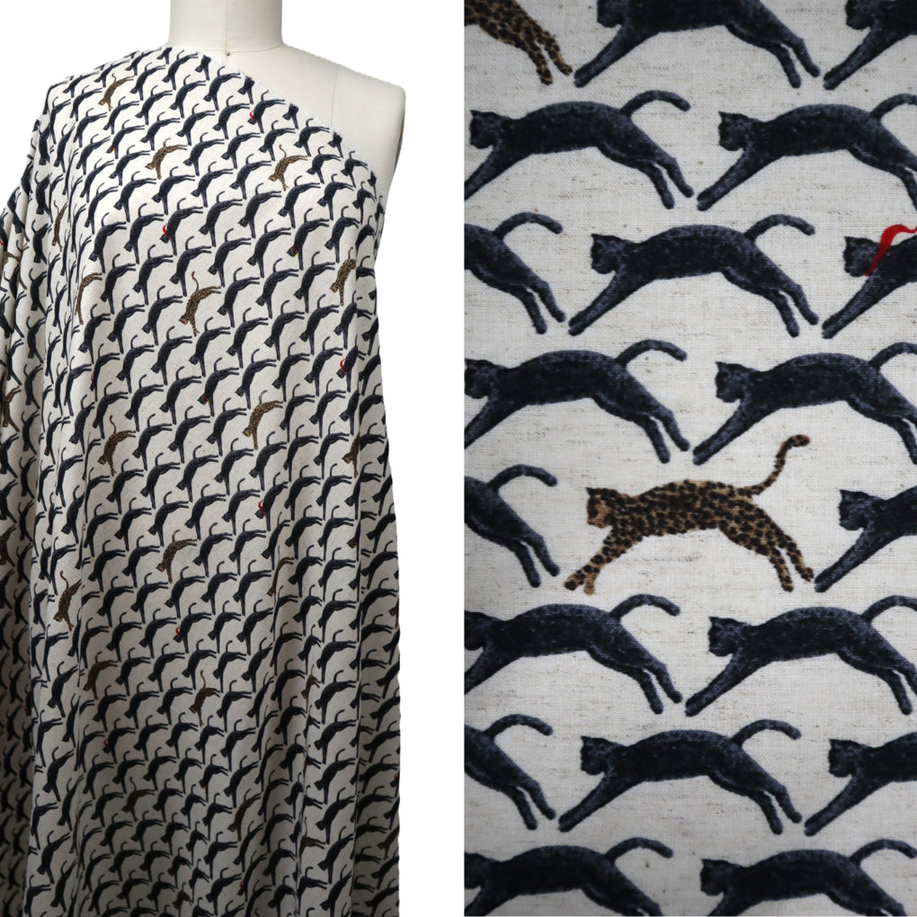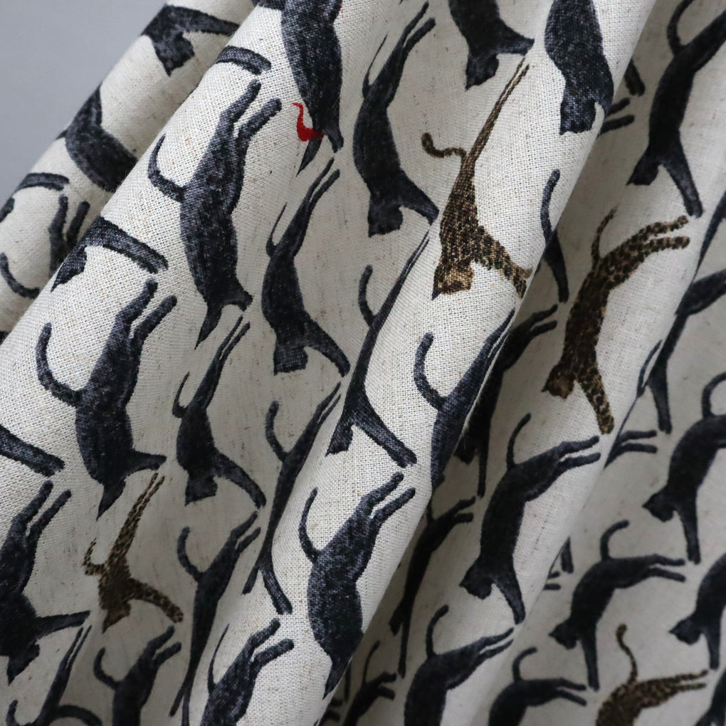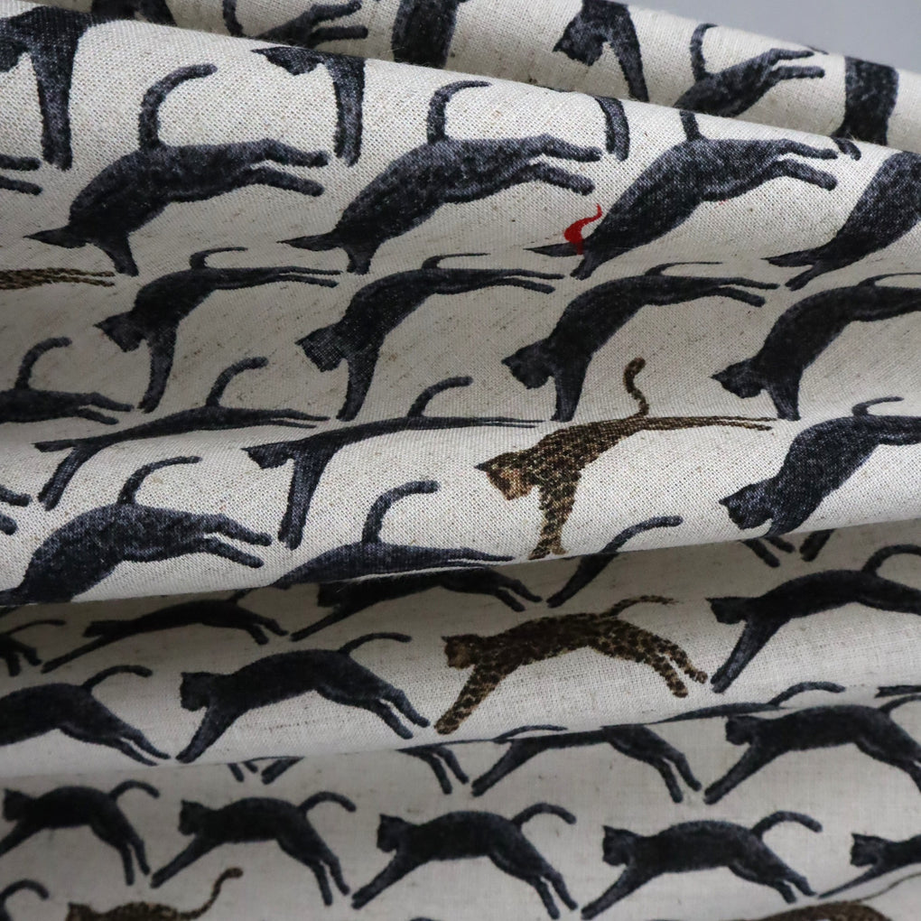 Kobayashi Cotton | Linen ~ 'Jaunty Leaping Leopard' Natural