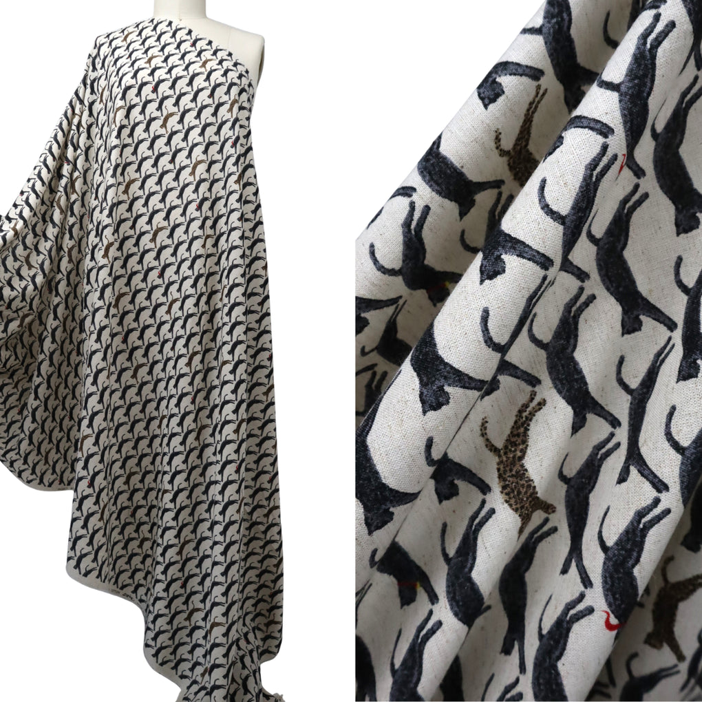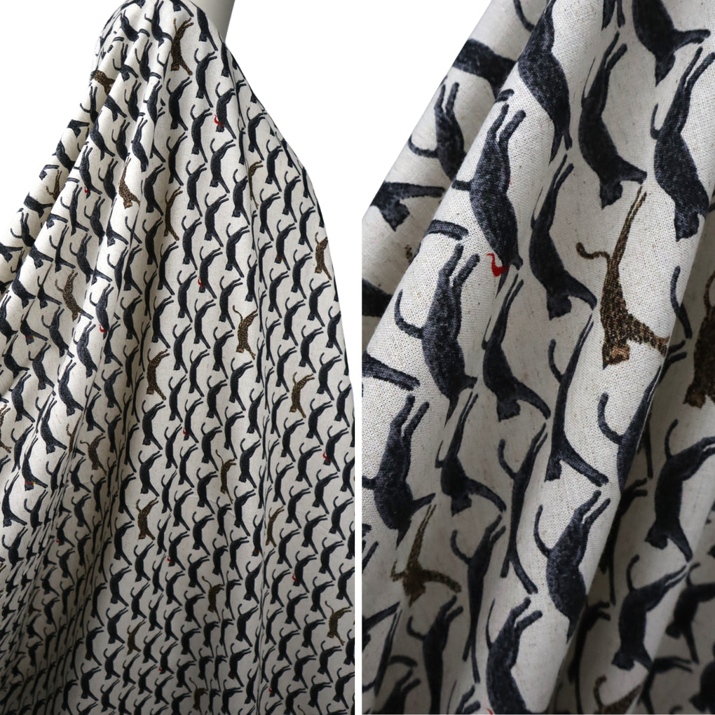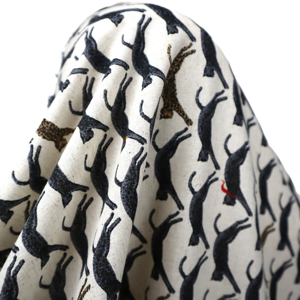 Kobayashi Cotton | Linen ~ 'Jaunty Leaping Leopard' Natural