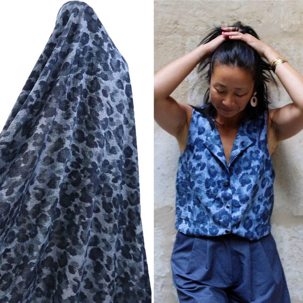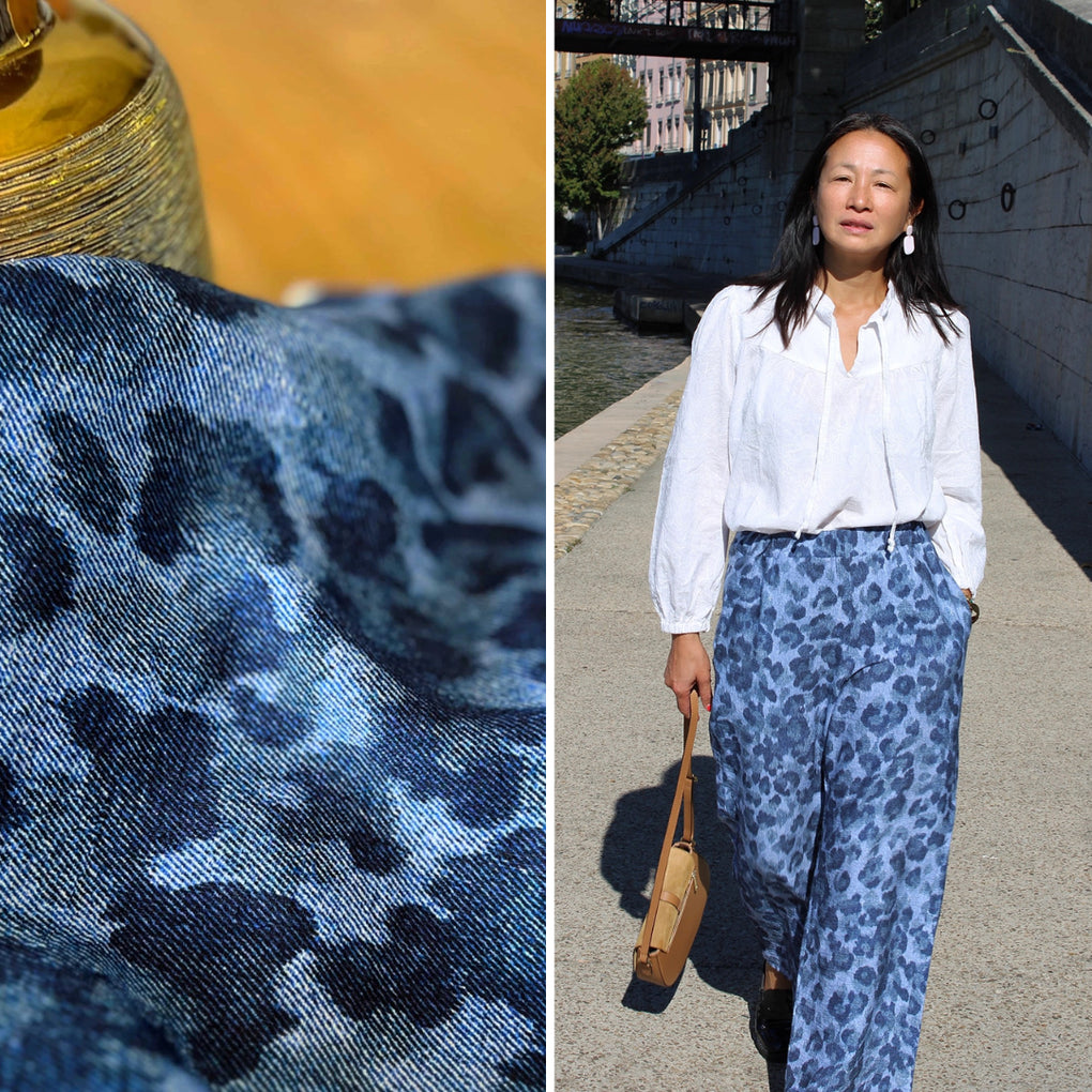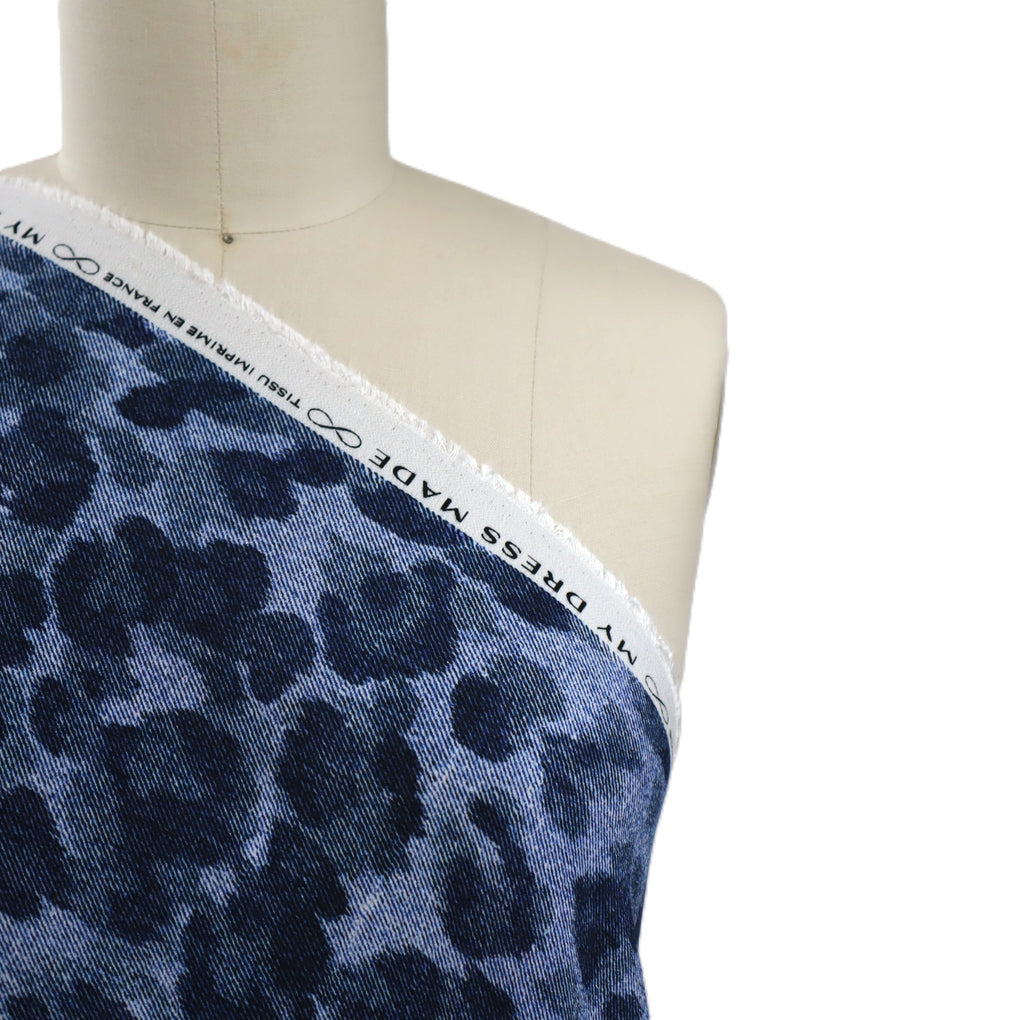 My Dress Made - 'Denim Leopard' Viscose Blend Twill