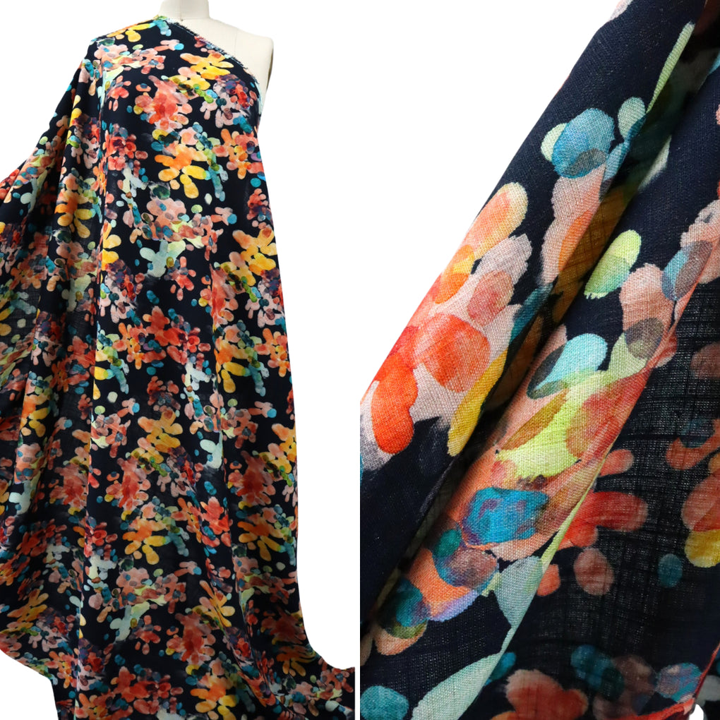 'Painted Whimsy' | Navy 70% Viscose 30% Linen *Last Piece 2m