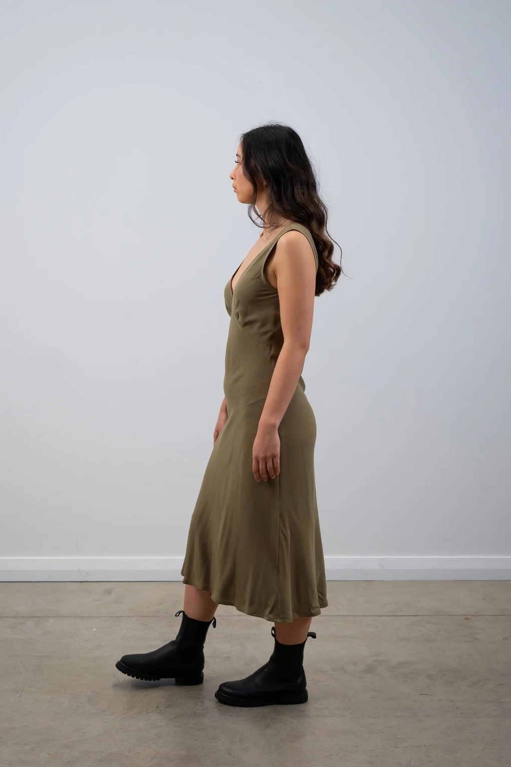 The pattern cut on the bias allows the dress to gently mold to the body.