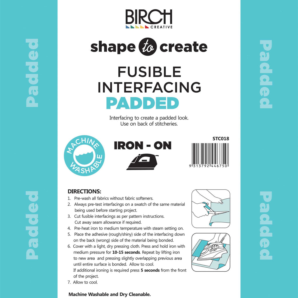 Shape to Create iron on padded interfacing is used to create a padded look and brings dimension to garments, quilts and bags.  It's ideal for using on the back of stitcheries. Machine washable and dry cleanable.