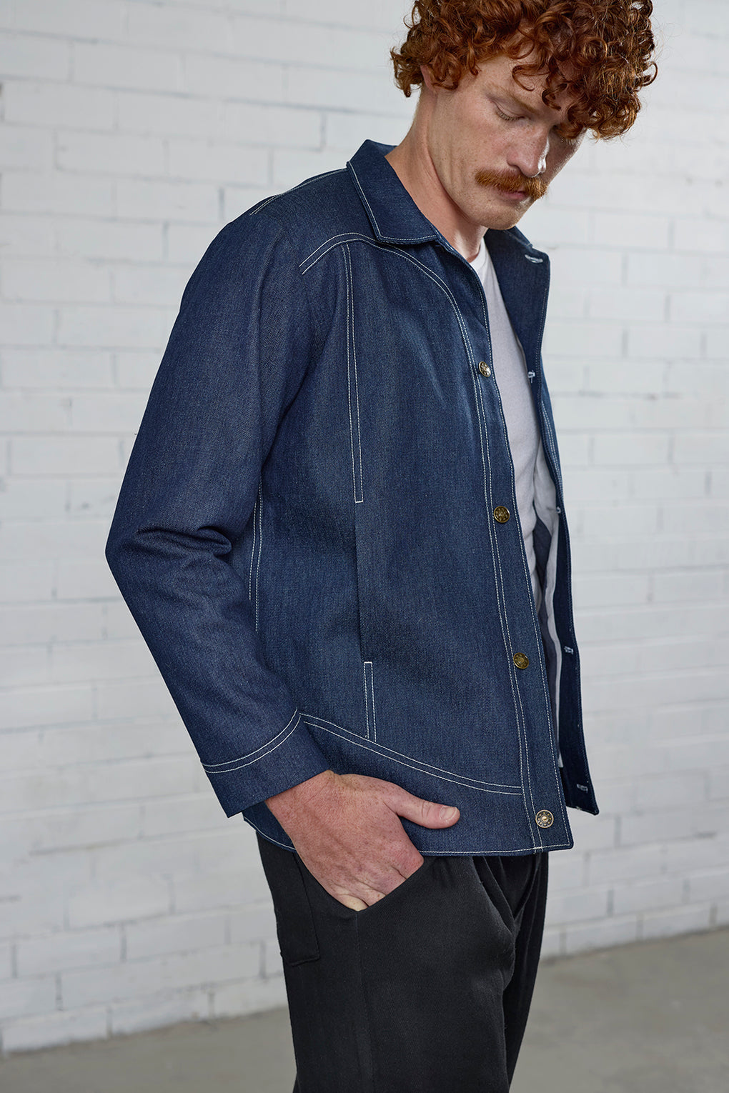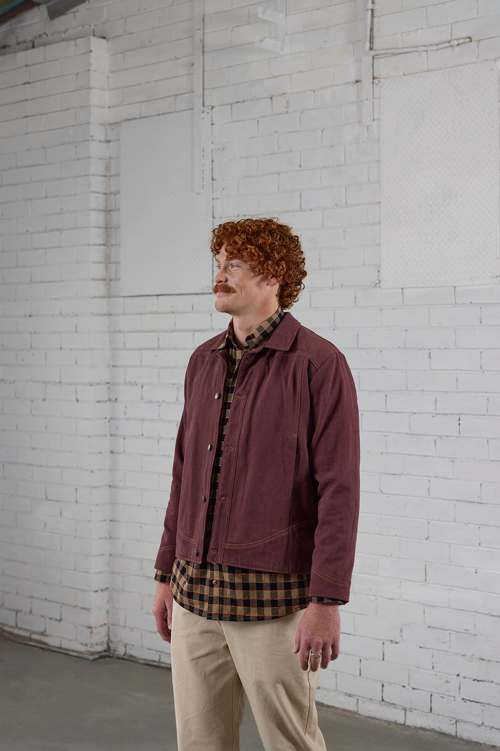 The gorgeous gender-neutral Kidman Jacket is fully lined, featuring unique curved seamlines that are emphasized with topstitching.  There are inseam pockets within the front panels and your choice of button or snap closures at the centre front.