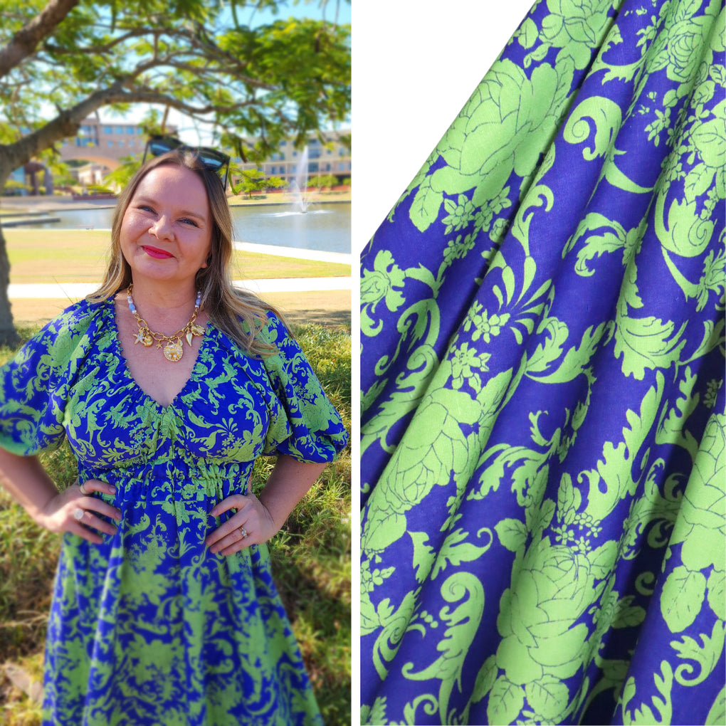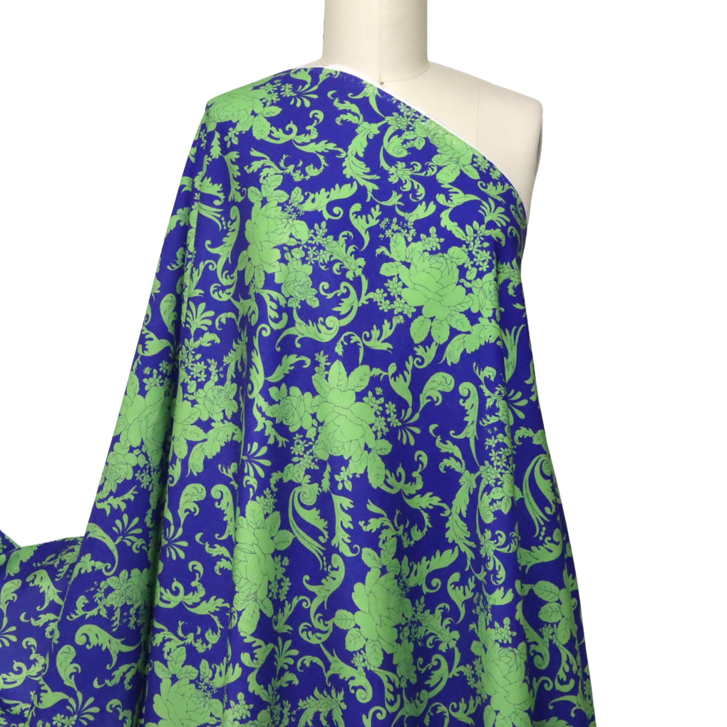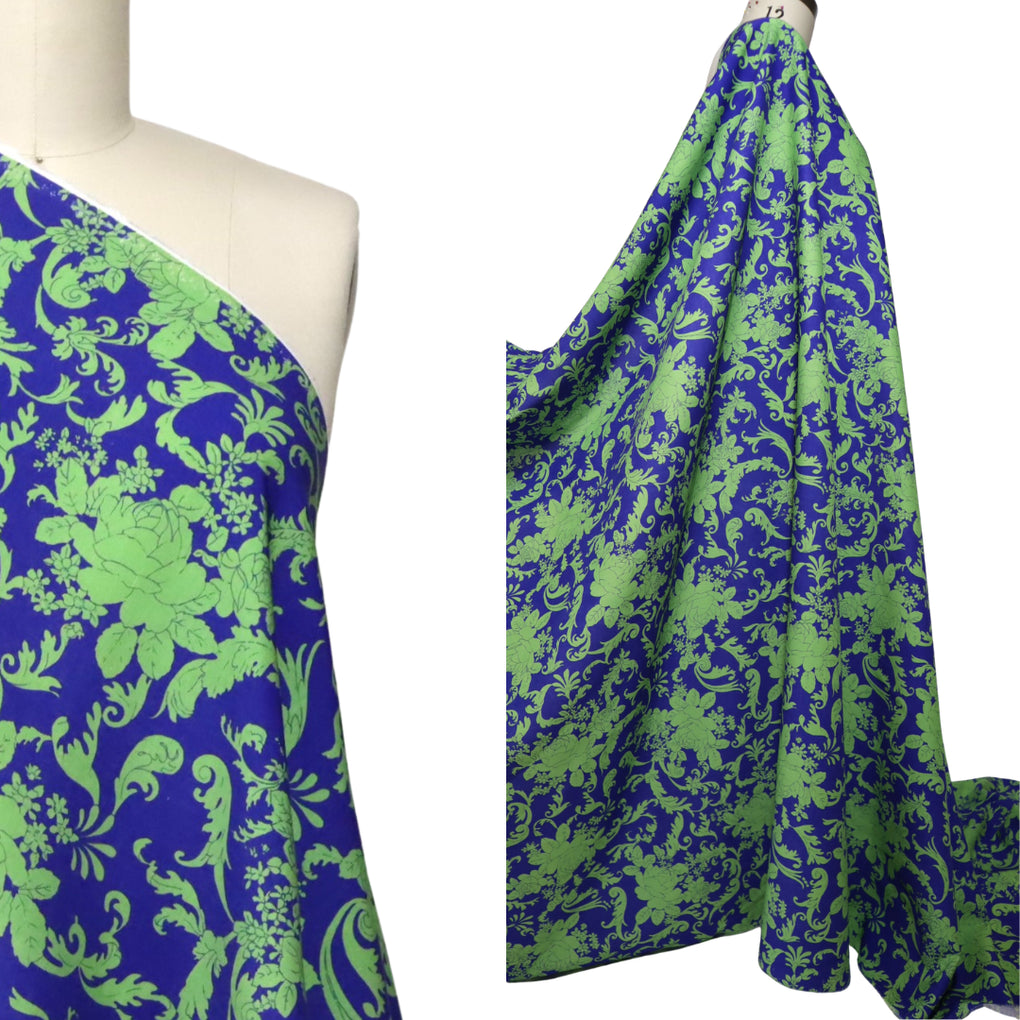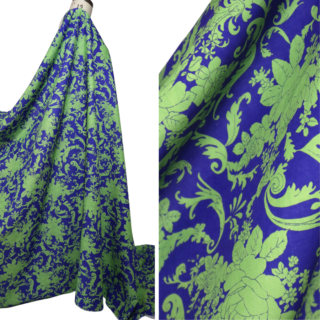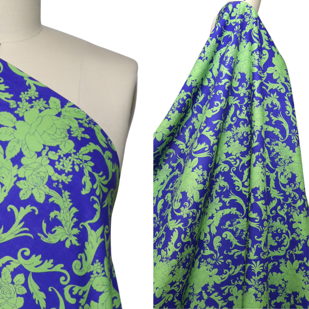 EXCLUSIVE 90% Linen 10% Silk – 'Floral Hero' | Cobalt & Green Tea *Last Piece (**See Description) 3.5m