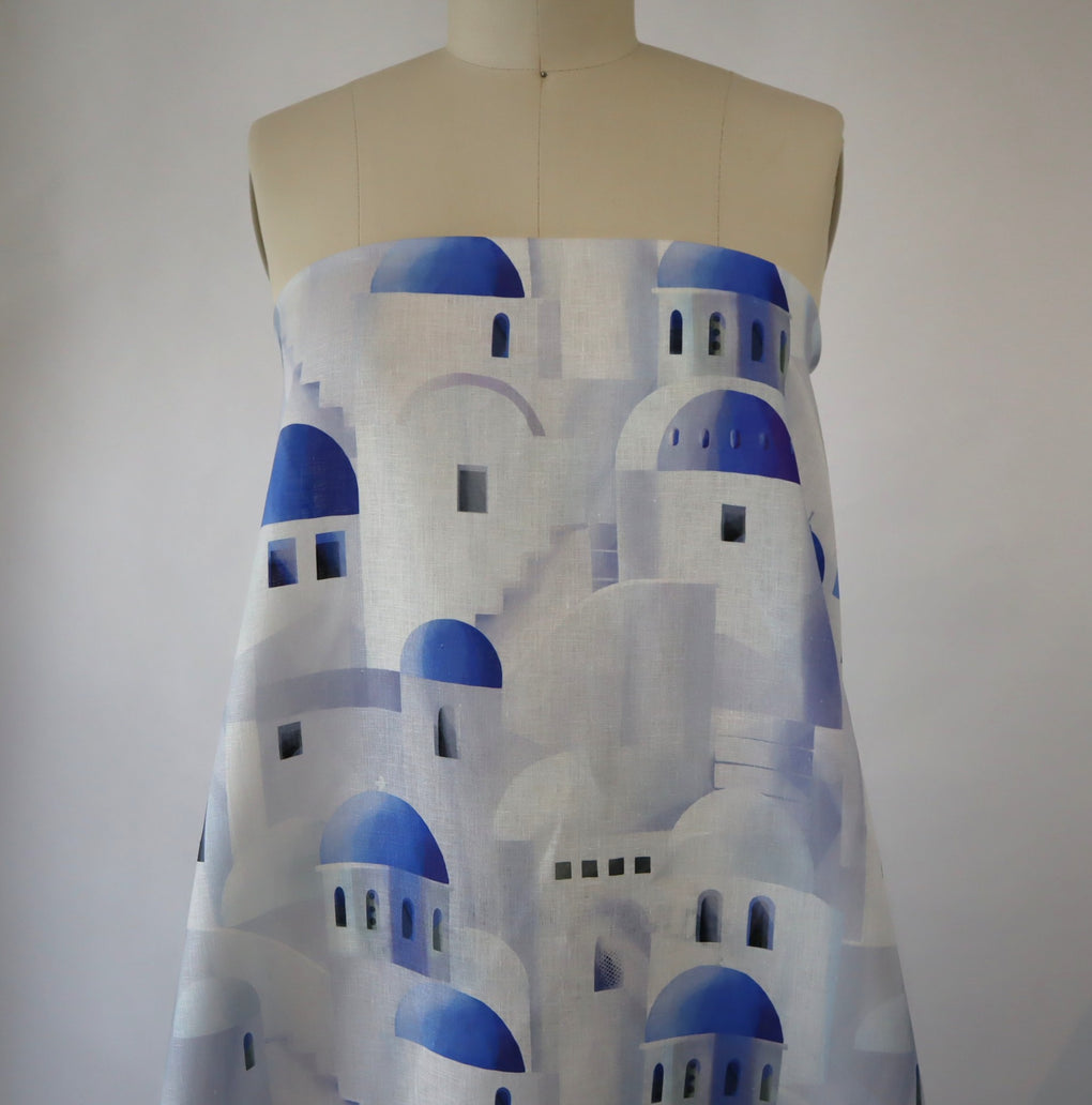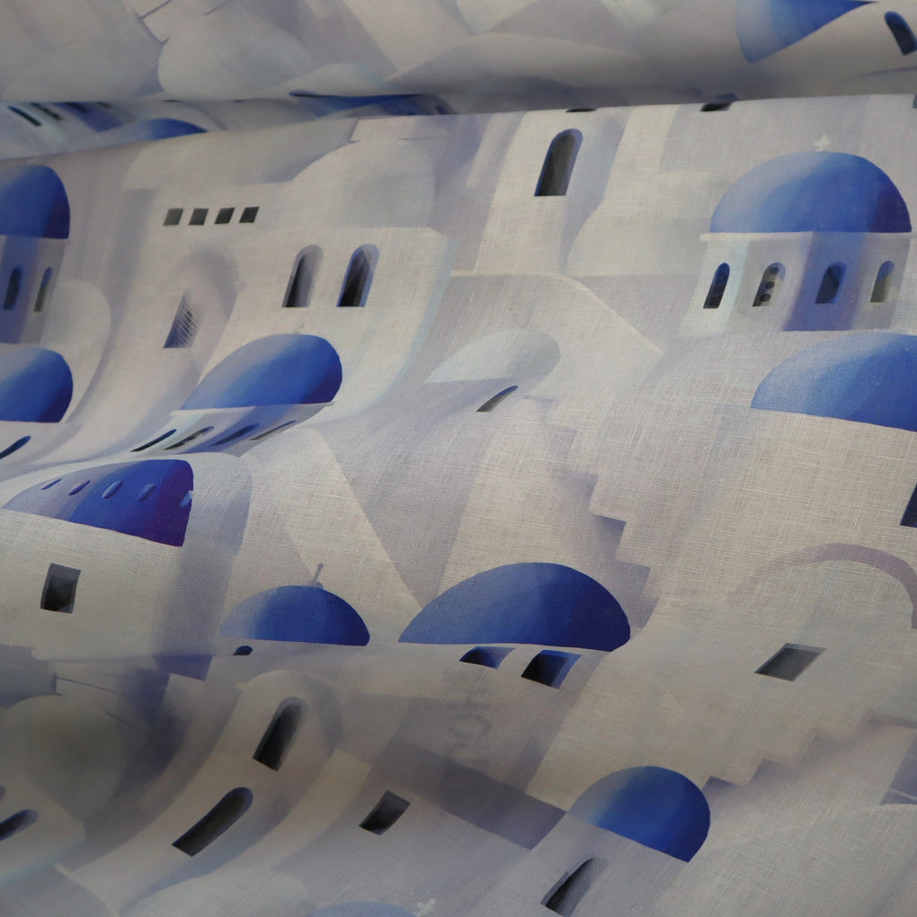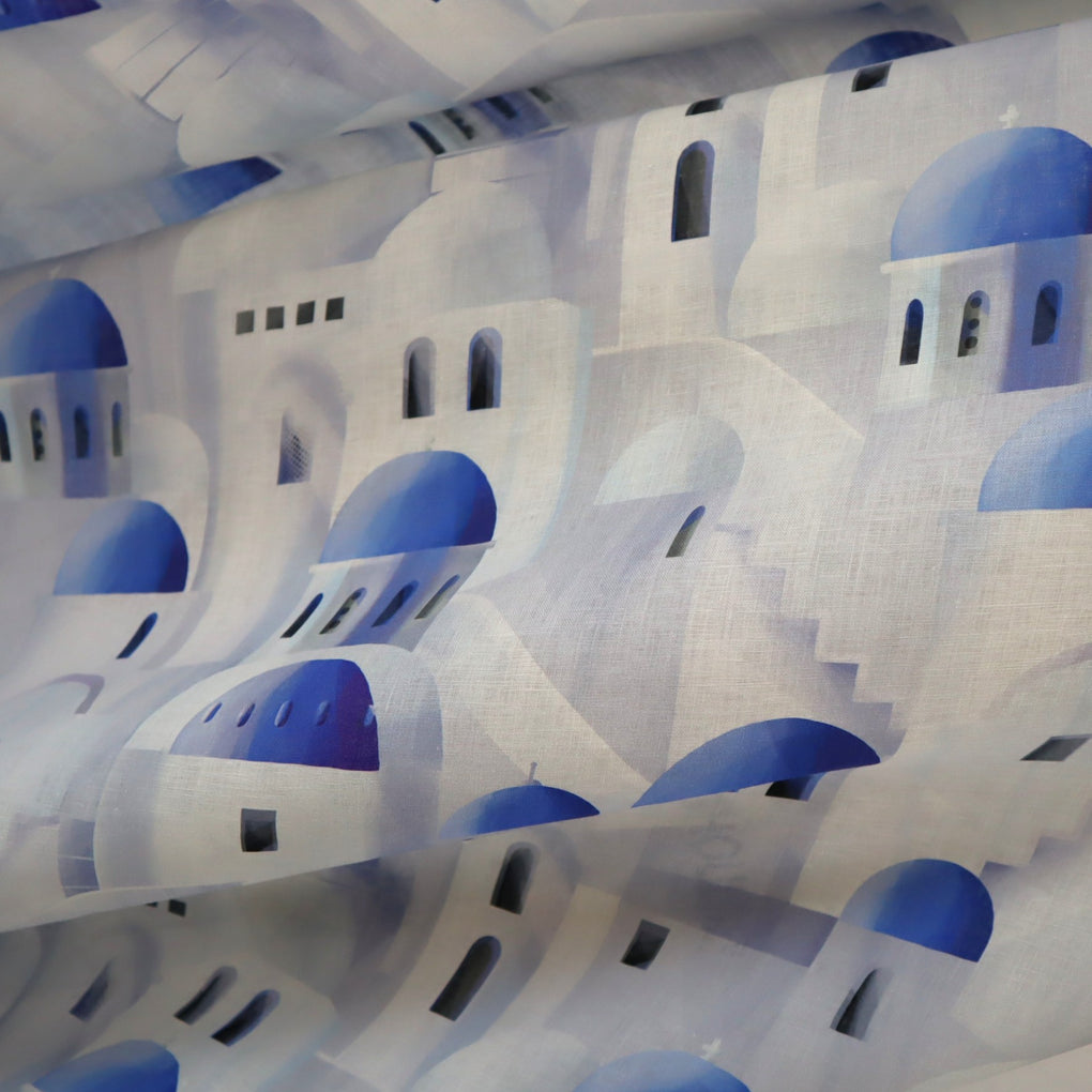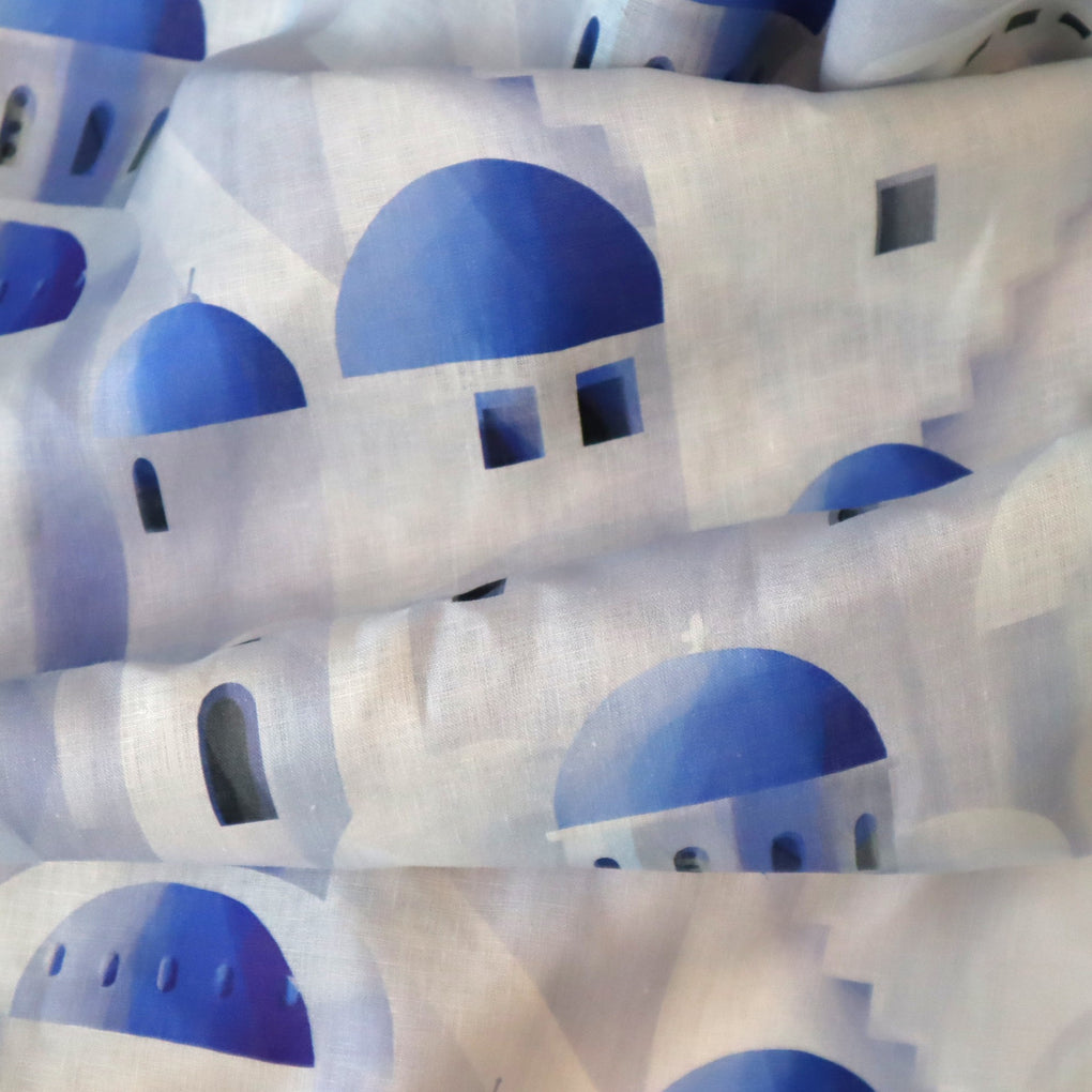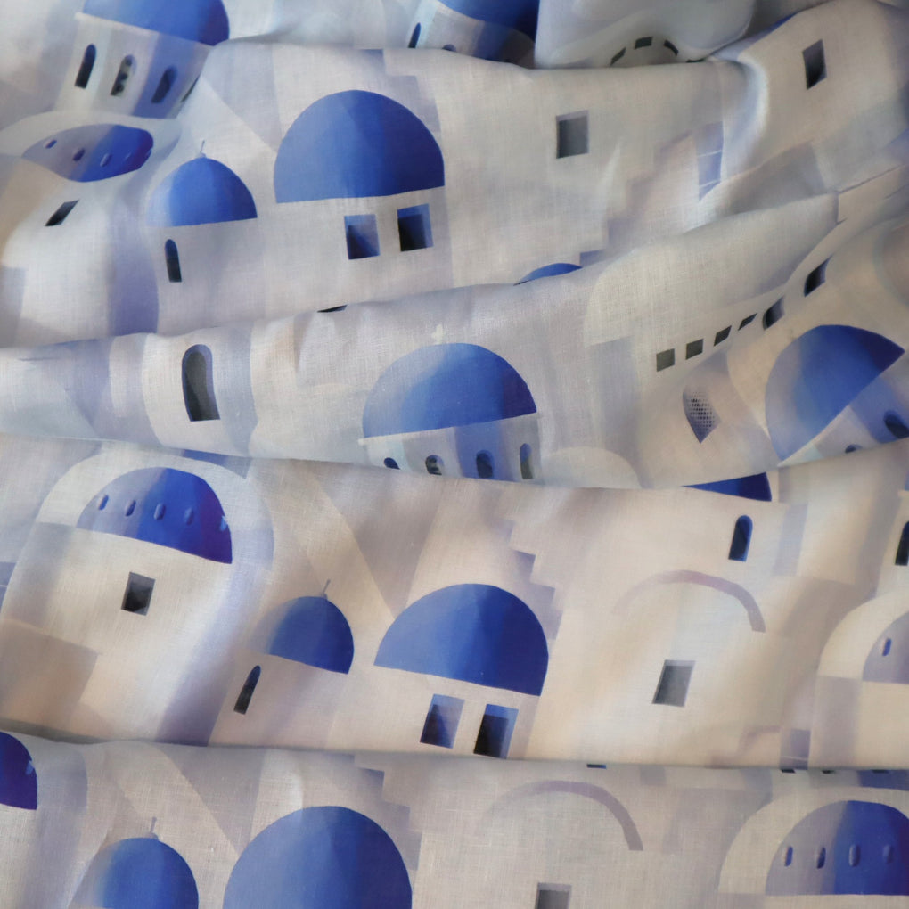The stunning, white-washed houses depicted in this print have such an interesting history. In the late 1930s, the Greek government decreed the lime washing of houses on the Cyclades to promote cleanliness and keep certain diseases at bay. Whilst that was the impetus for the iconic motif, the benefits of painting the houses were multifaceted. The white also reflected the sunlight and thus kept the stone houses cooler in summer. In the aftermath of WWII, the stunning vista of white, sugar-cube houses also helped to relieve the misery of the war era, and by the 1960s, these beautiful islands became a magnet for the rich and famous.