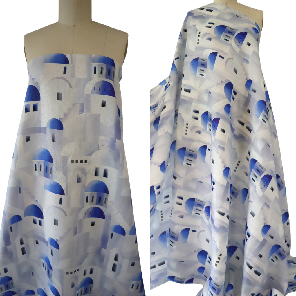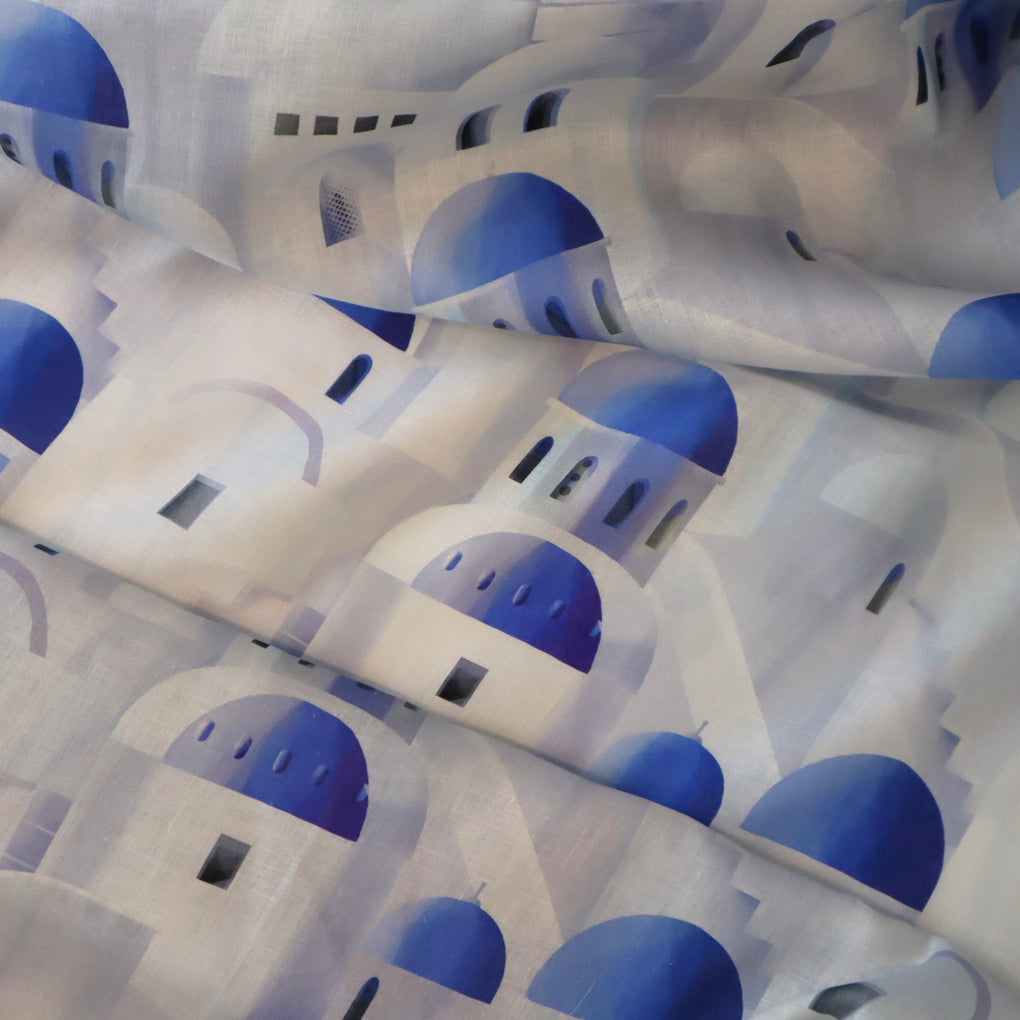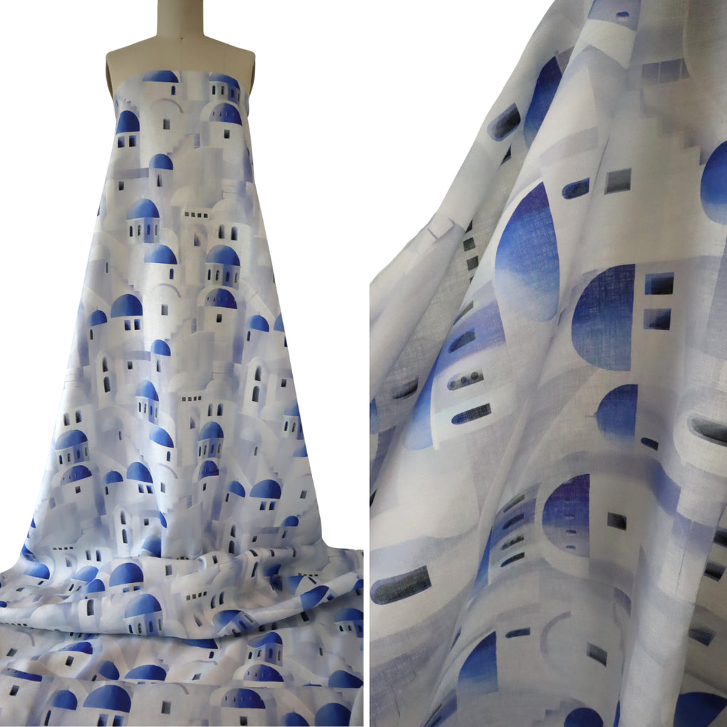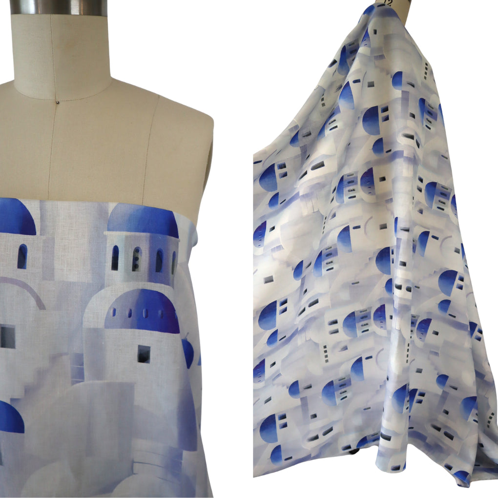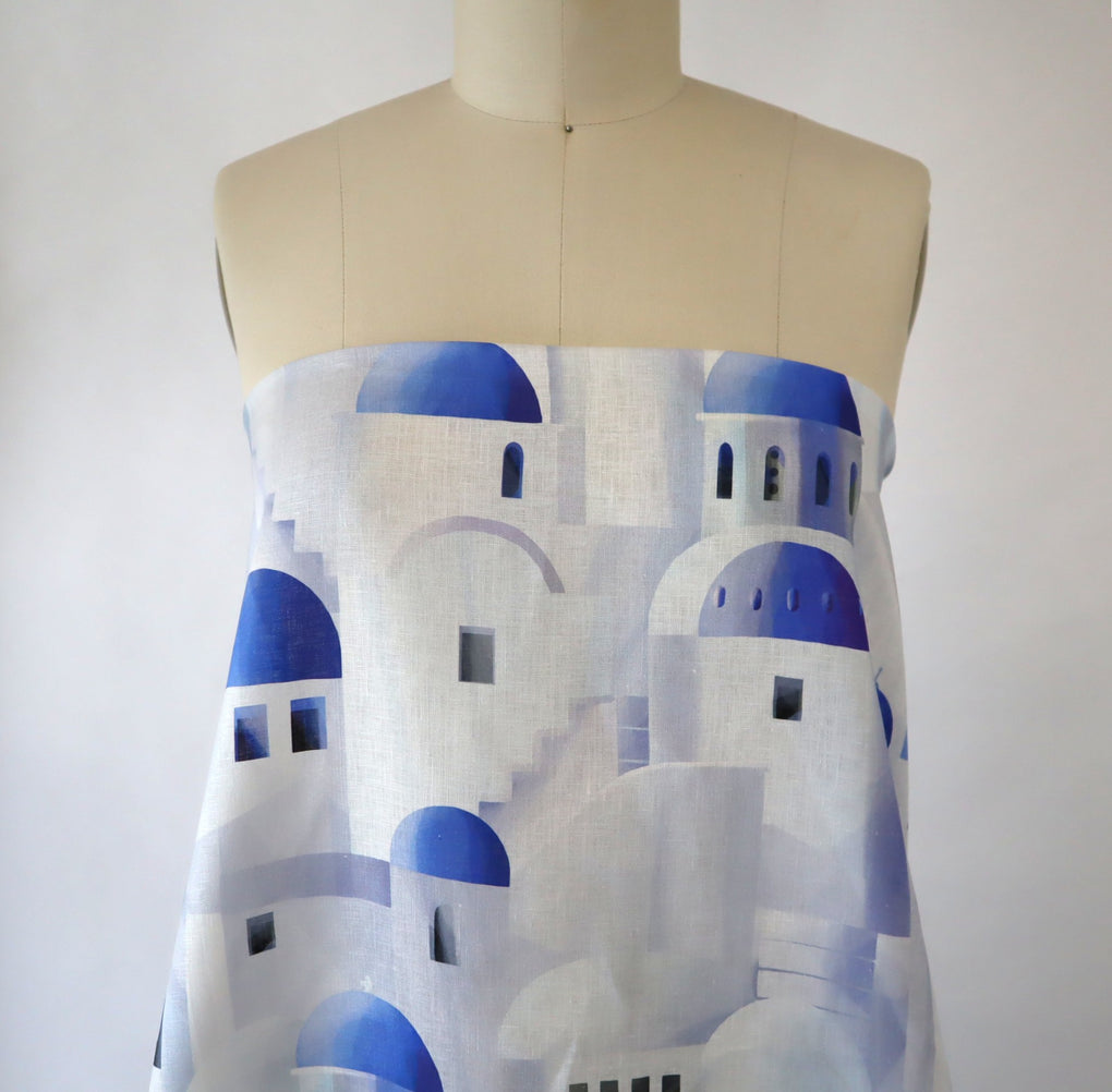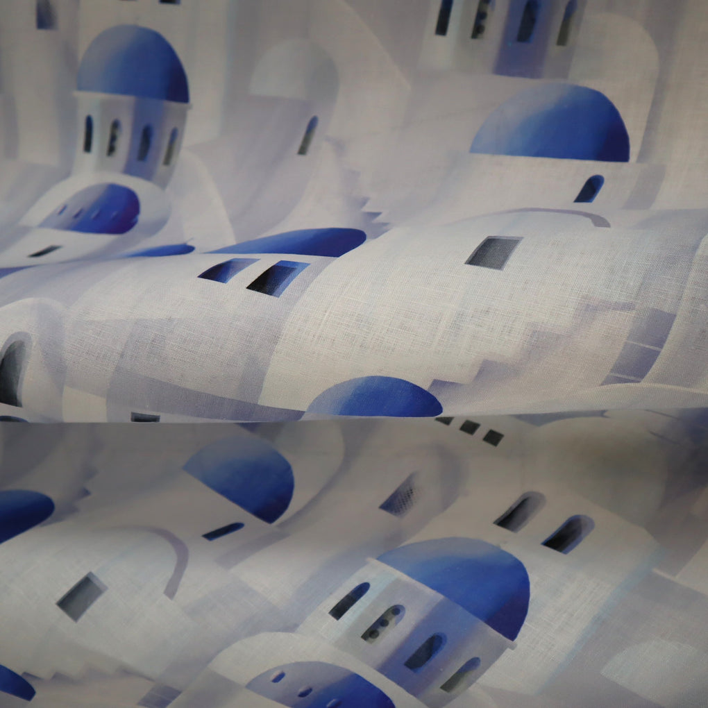 The stunning, white-washed houses depicted in this print have such an interesting history. In the late 1930s, the Greek government decreed the lime washing of houses on the Cyclades to promote cleanliness and keep certain diseases at bay. Whilst that was the impetus for the iconic motif, the benefits of painting the houses were multifaceted. The white also reflected the sunlight and thus kept the stone houses cooler in summer. In the aftermath of WWII, the stunning vista of white, sugar-cube houses also helped to relieve the misery of the war era, and by the 1960s, these beautiful islands became a magnet for the rich and famous.