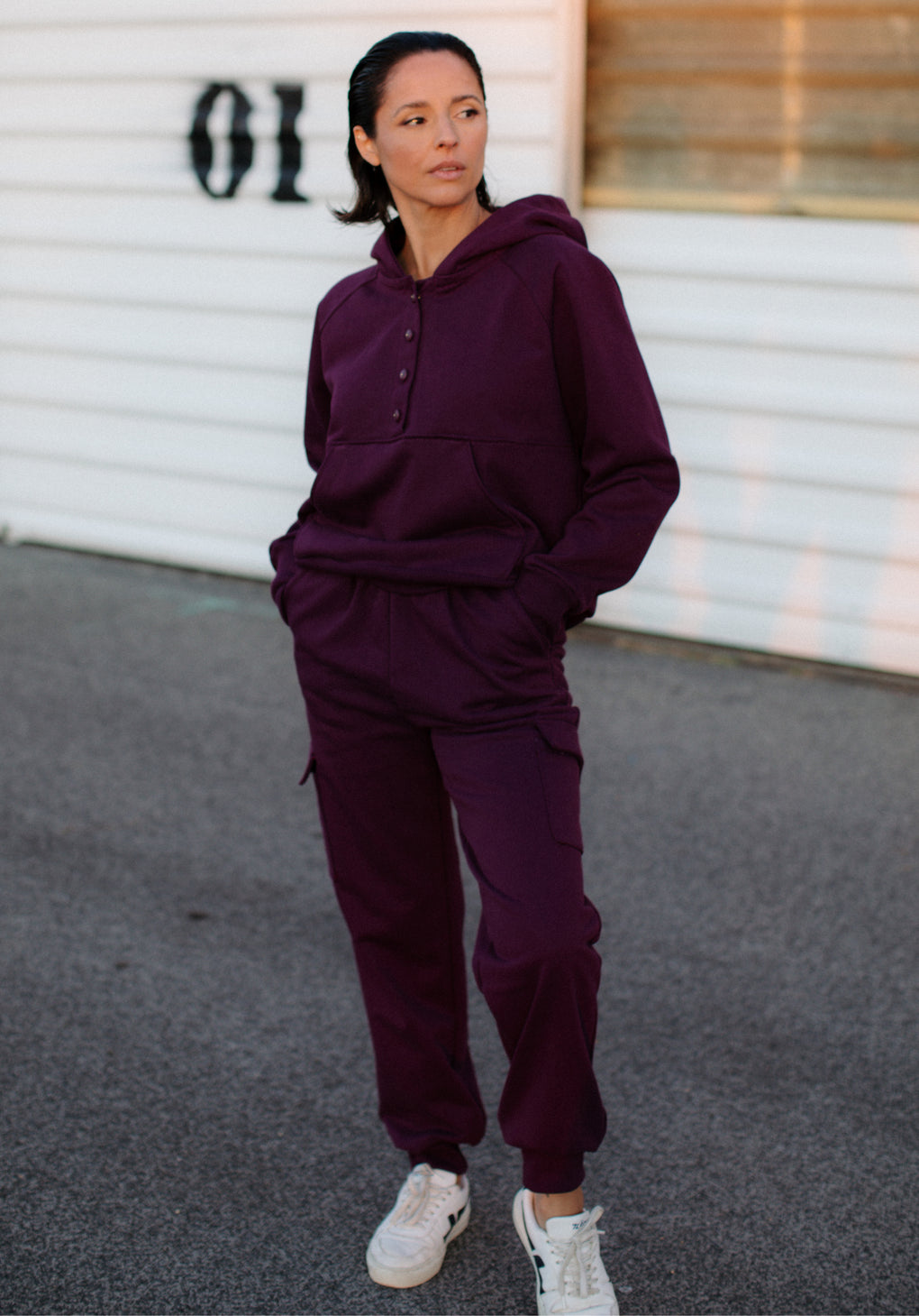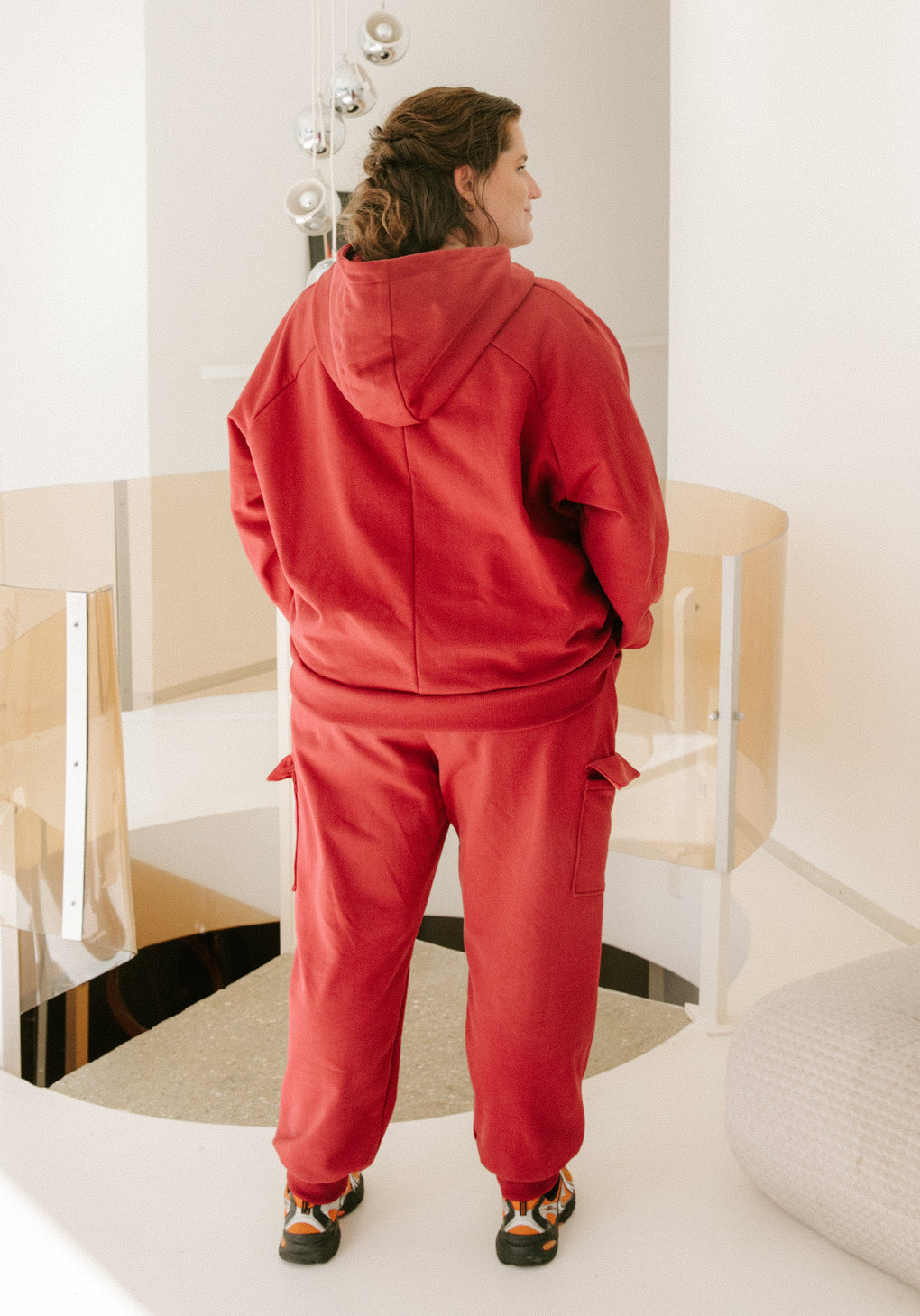 The Sasha joggers combine comfort with neat finishes. The elasticated waistband is ingeniously built into the front pieces to avoid unwanted bulk, and the back features a flattering shaped yoke. These stylish casual pants have Italian pockets, with the option to add flap patch pockets on the leg sides. The leg is straight and is neither too slim nor too loose. The hem can be finished to suit your preference: with ribbing, at ankle length, or extended over the instep.