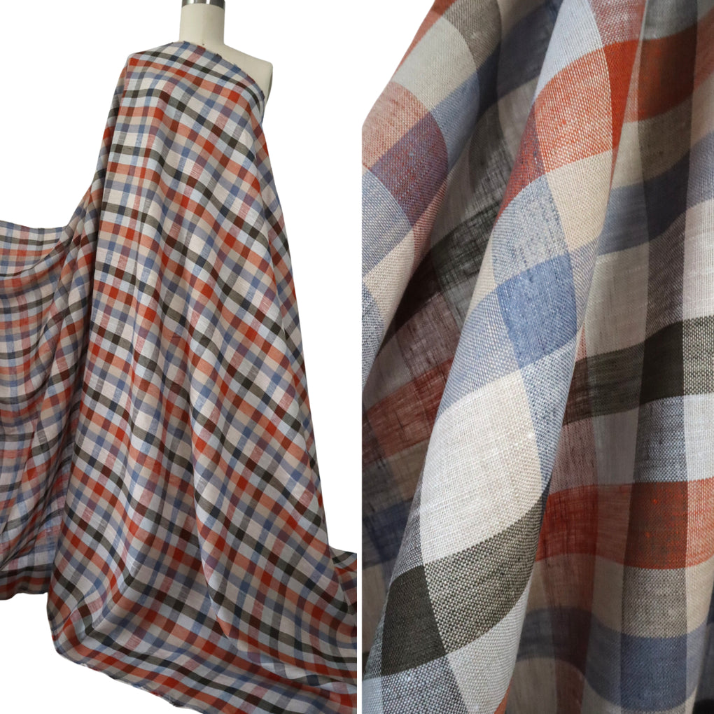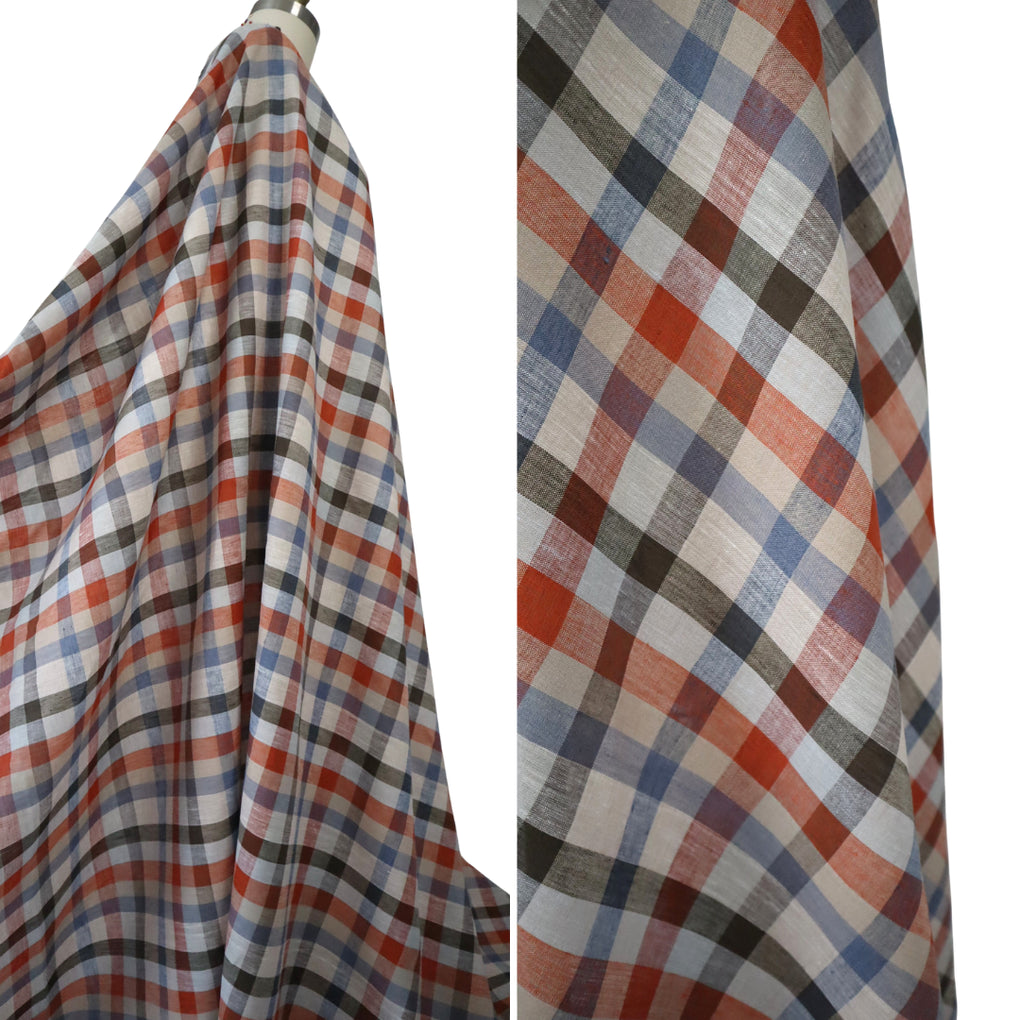 ‘The Country Road’ check features a mix of Terracotta (burnt orange), a dusty blue, olive, beige and white. The colour combination makes it perfect for separates, and coordinating with your wardrobe. It would also be stunning in a dress in its own right. Have fun and mix these new checks together, or have a look in your scrap box and play with contrasting fabric for collar bands, plackets and cuffs. Be sure to look at our expanding button range to finish off your garment.