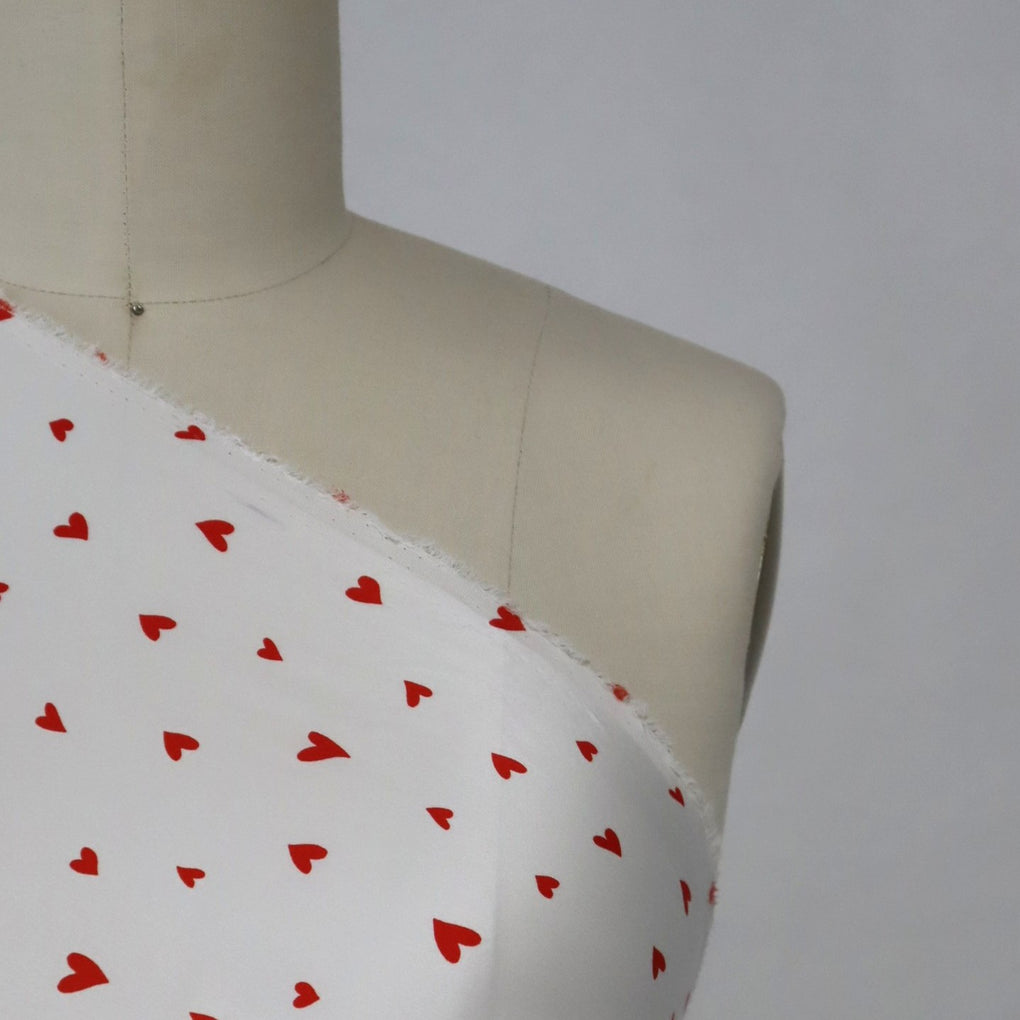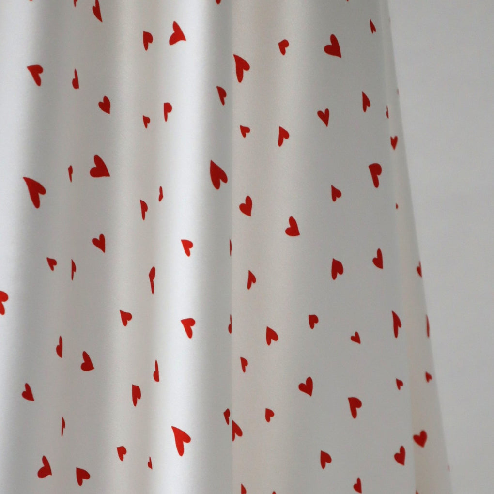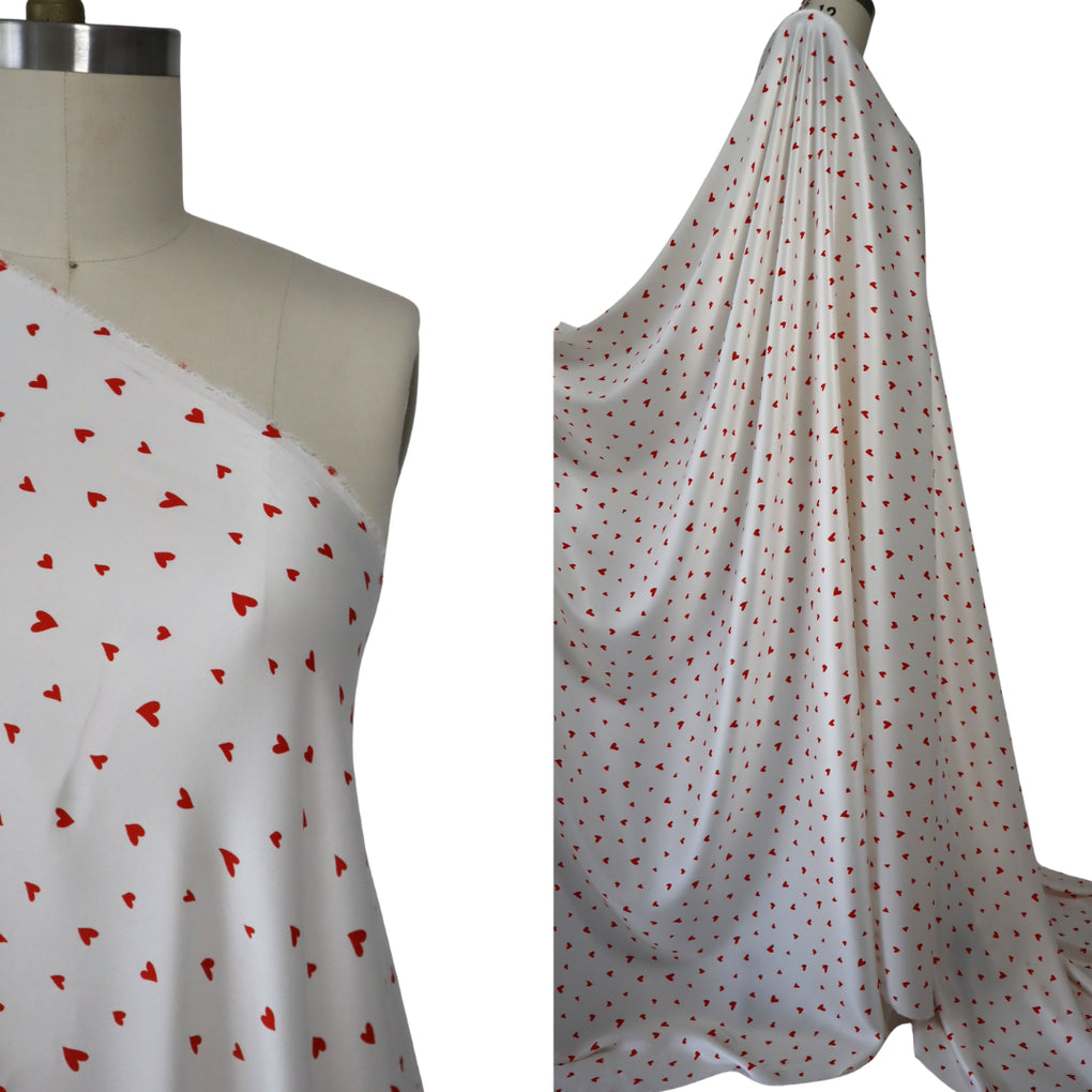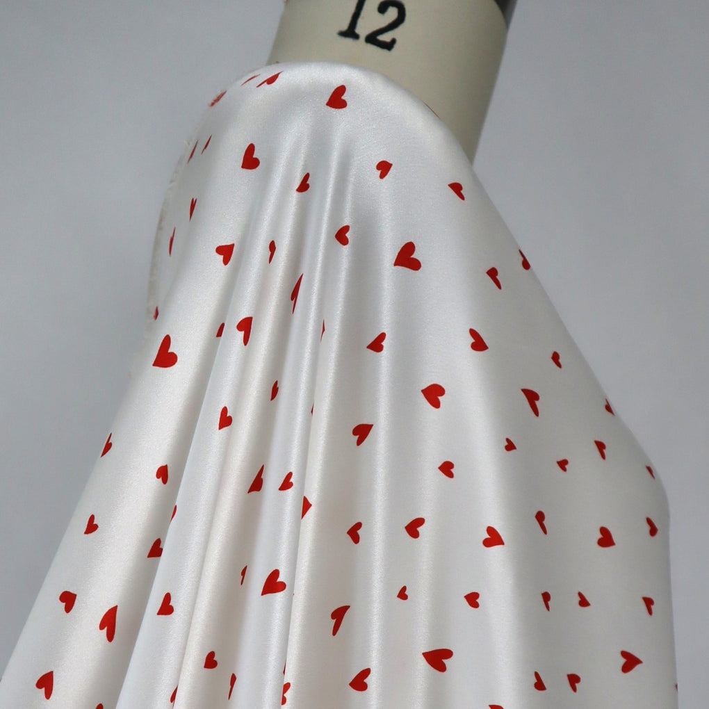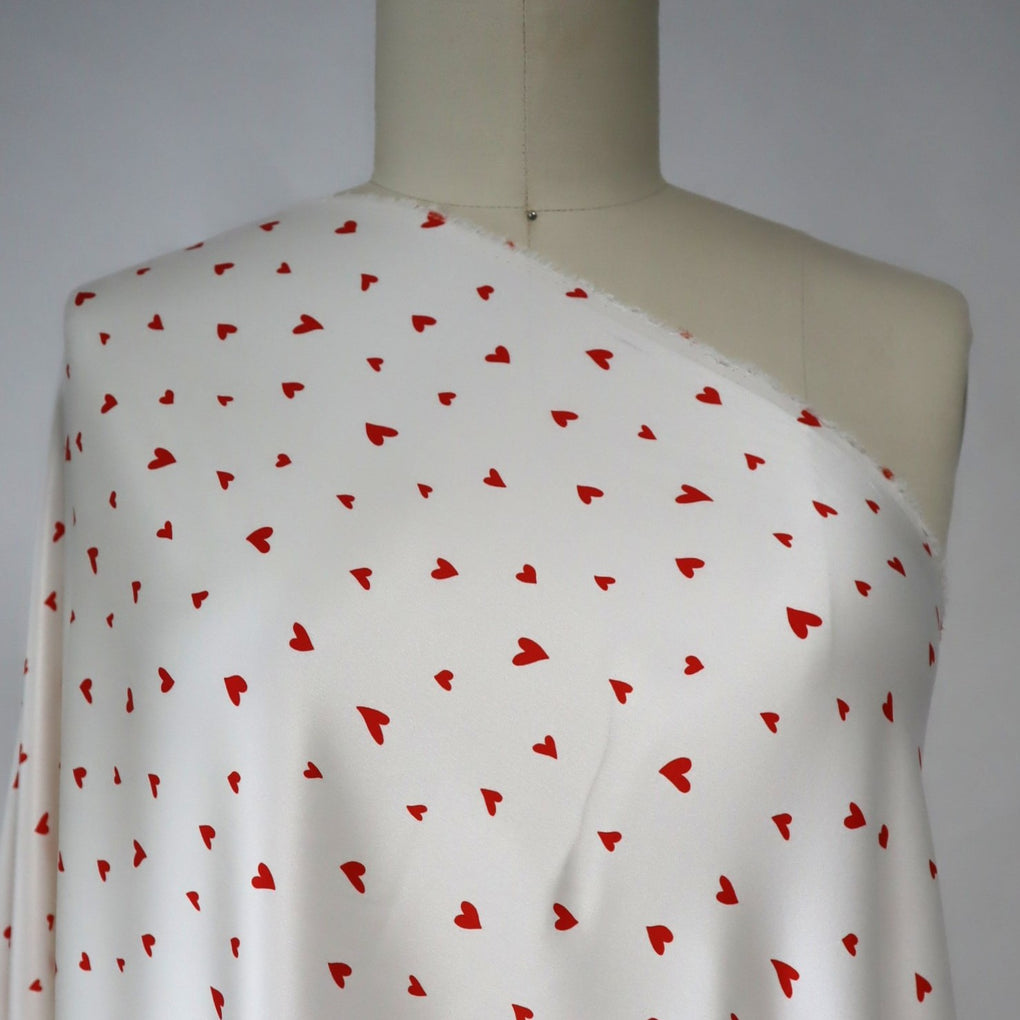 ‘Self-Love’ is an understated heart print, in line with a sparse polka dot. The two sized hearts are not perfectly symmetrical, and the print is not directional. The print is called ‘Self-Love’ because we all deserve a lovely silk garment. This is perfect for blouses, loose-fit shirts, dresses (with lined skirts), and wonderful pyjamas and robes. This certainly needs to be worn beyond Valentine’s Day. We need a little Self Love every day.