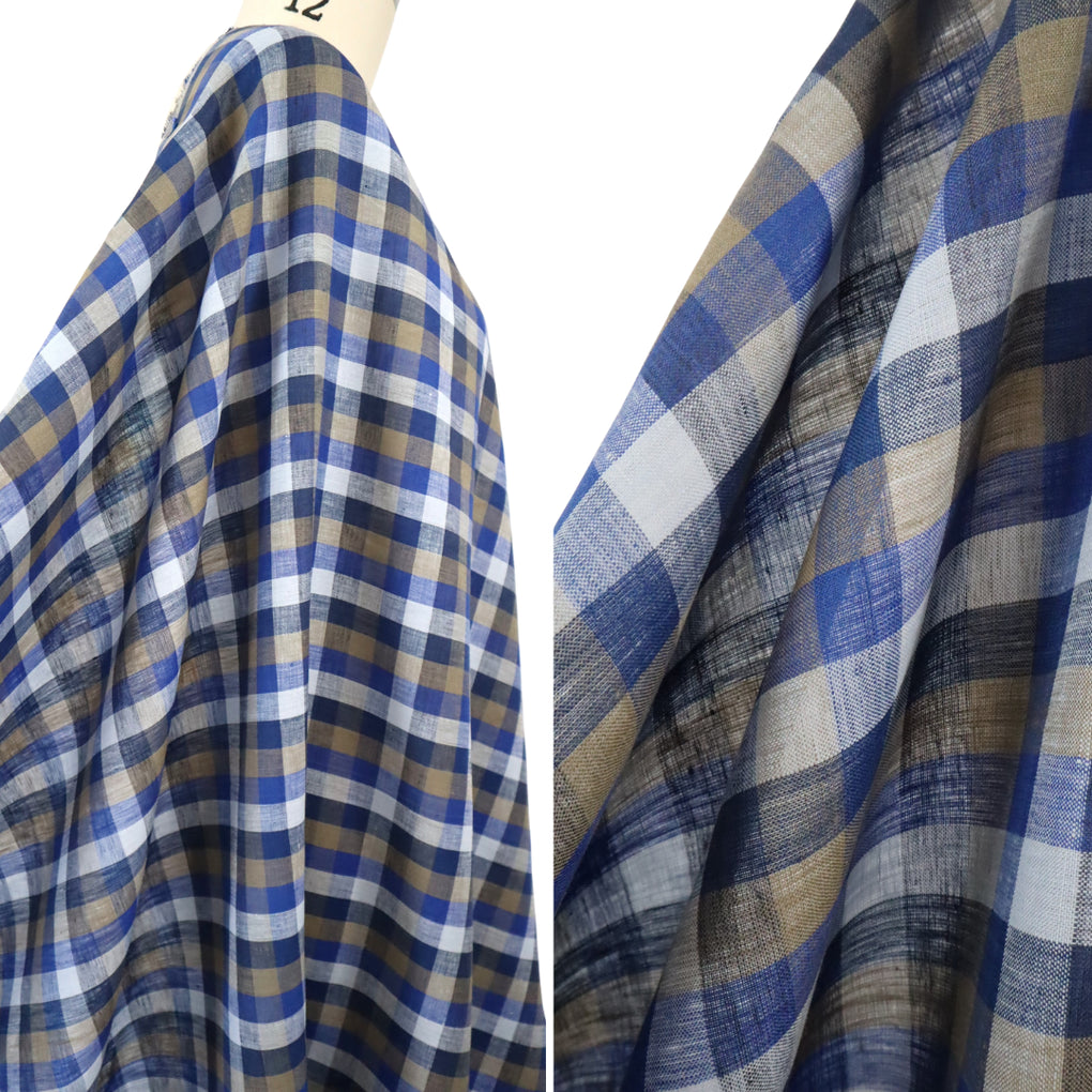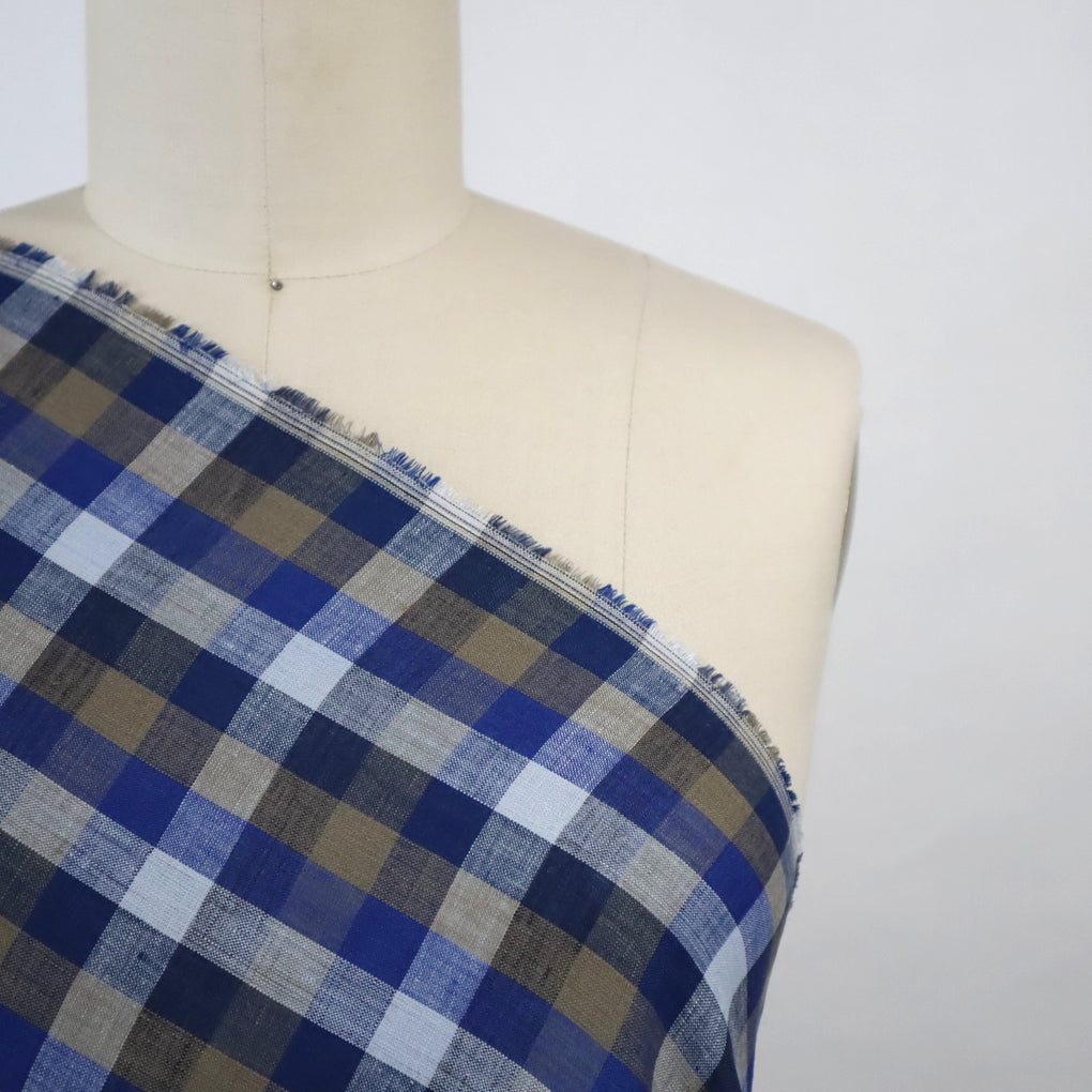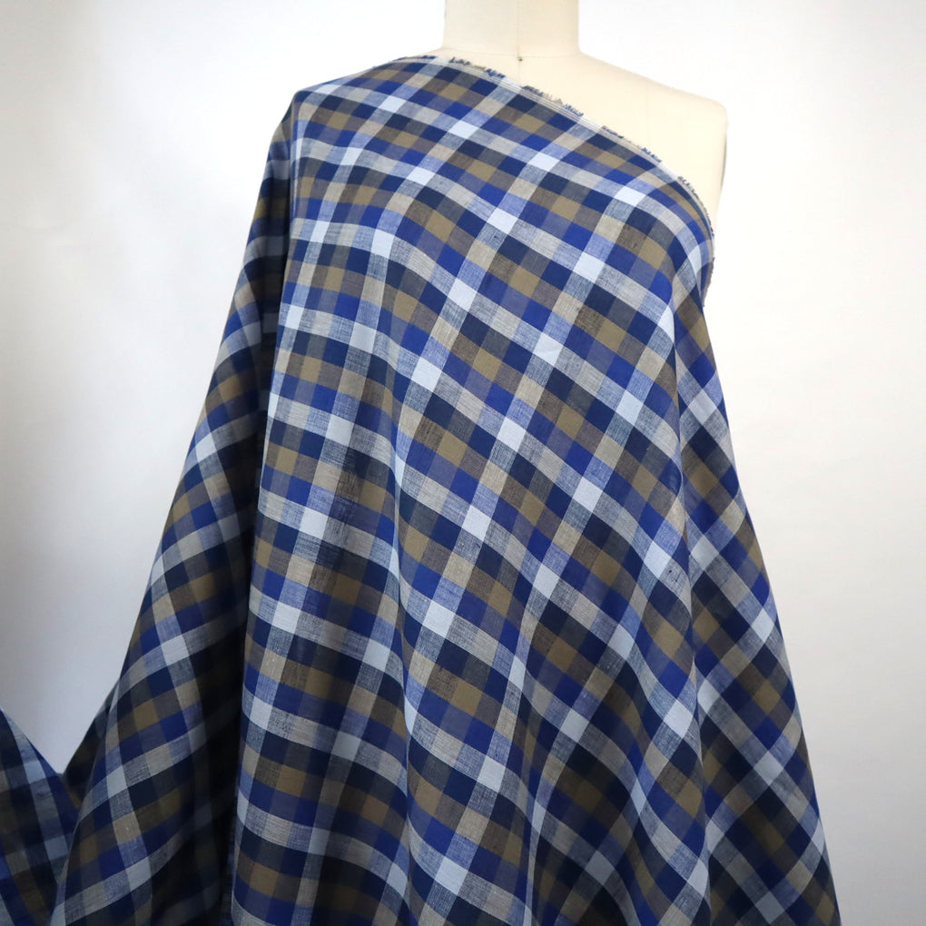‘The Brook’ features a striking Royal Blue, and the accompanying Navy, Khaki and White make for a superb yarn dyed check, perfect for all seasons. Team with jeans in cooler months or coordinate with fresh white and tan in summer. This is perfect for separates, but it also beckons a dress. Have fun and mix these new checks together or have a look in your scrap box and play with contrasting fabric for collar bands, plackets and cuffs. Be sure to look at our expanding button range to finish off your garment.