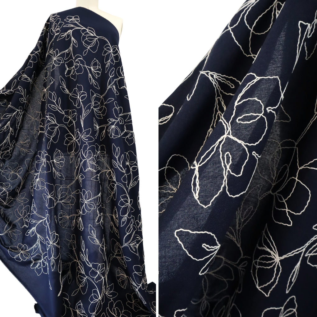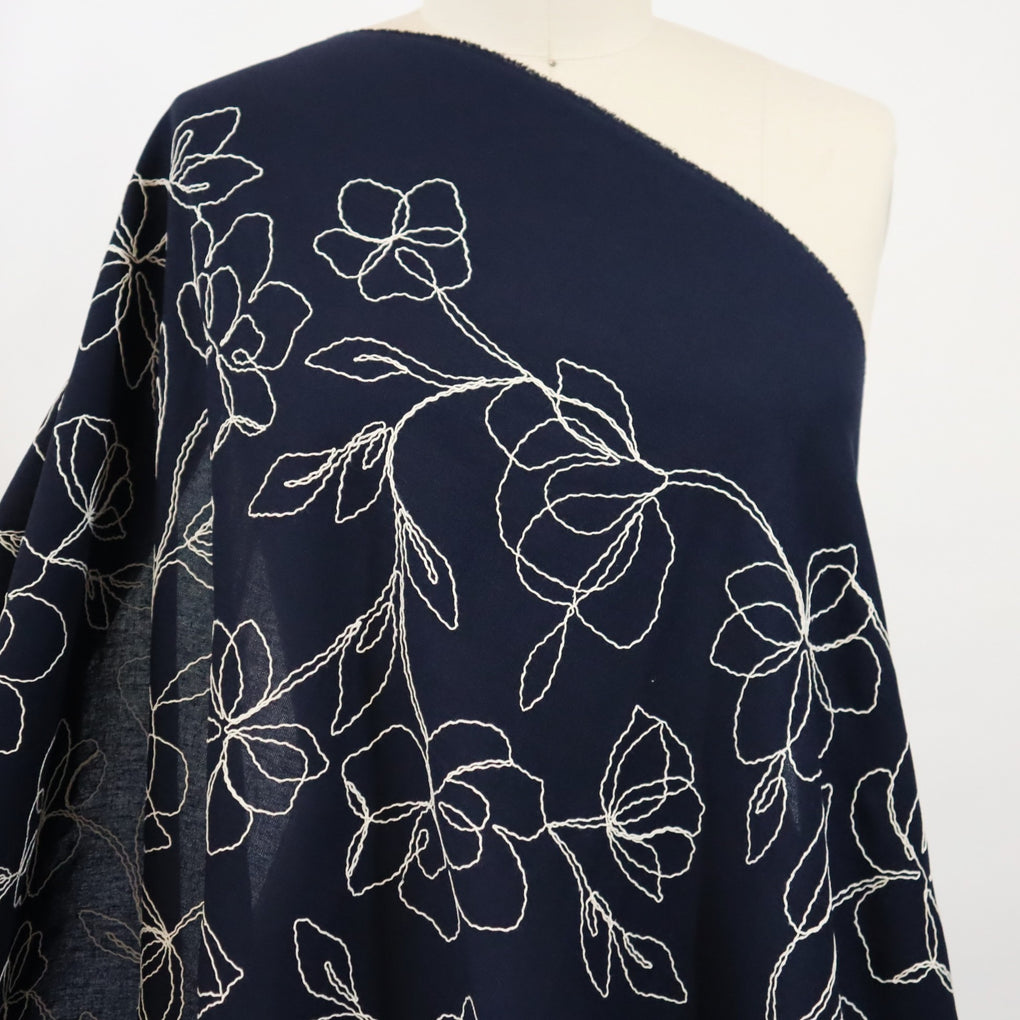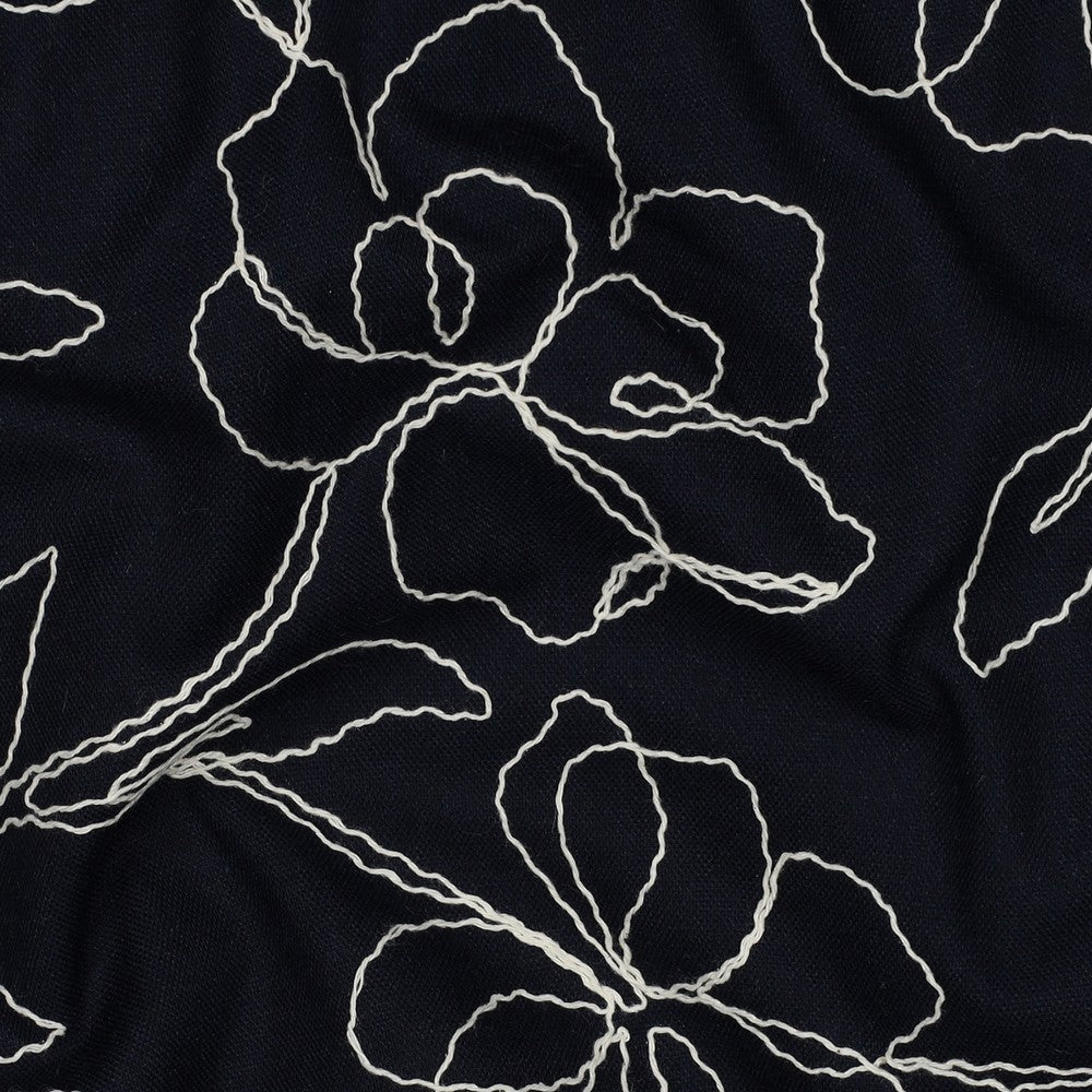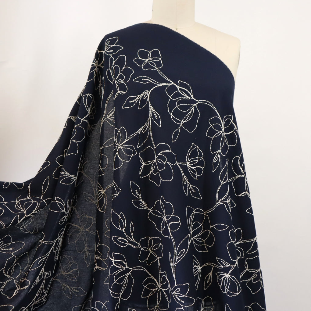 'Hadley' ~ Navy Embroidered Linen Viscose