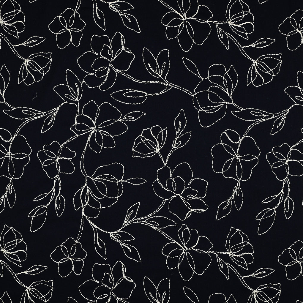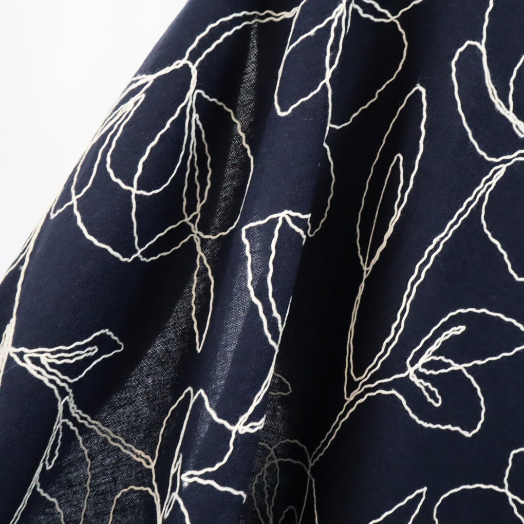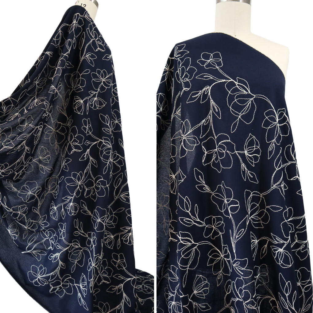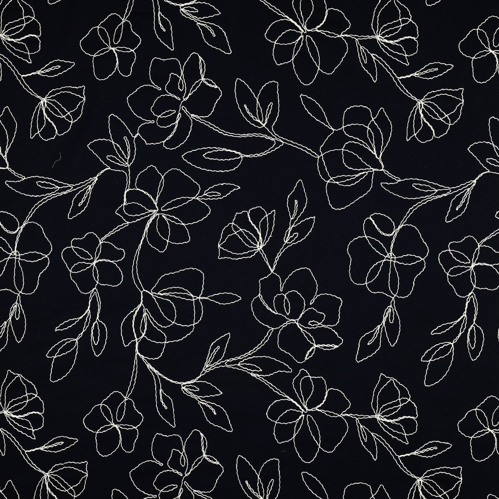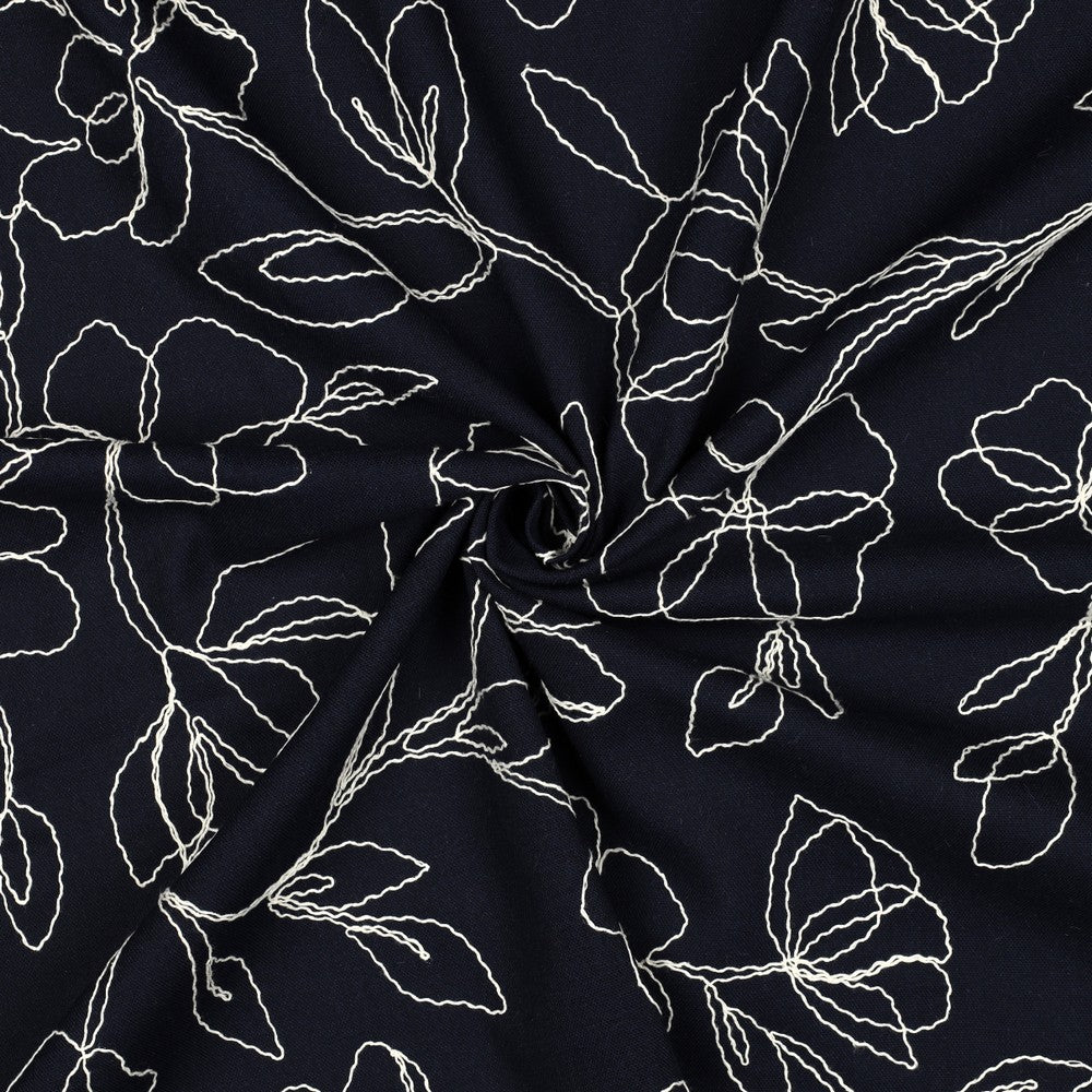'Hadley' ~ Navy Embroidered Linen Viscose