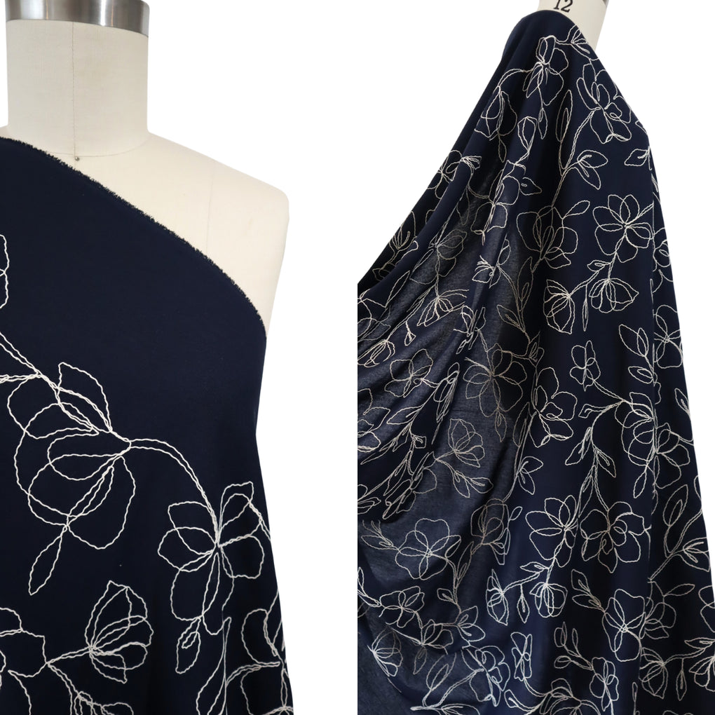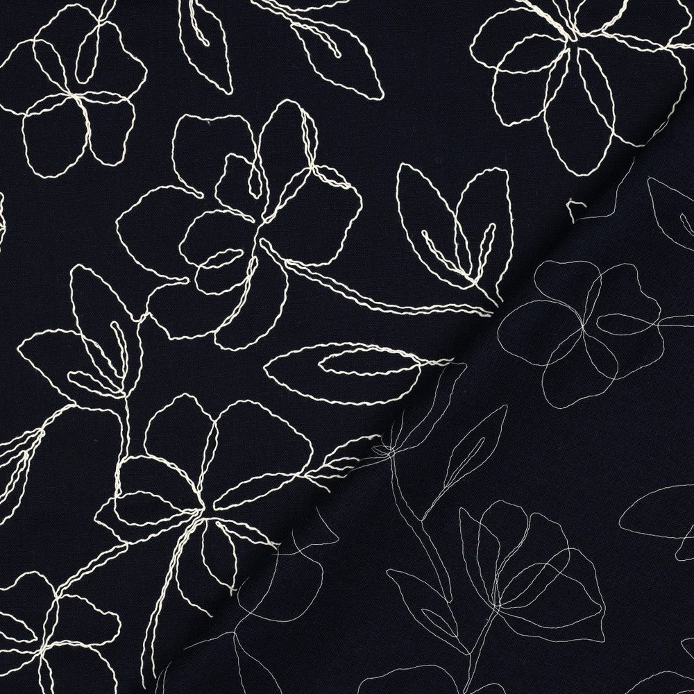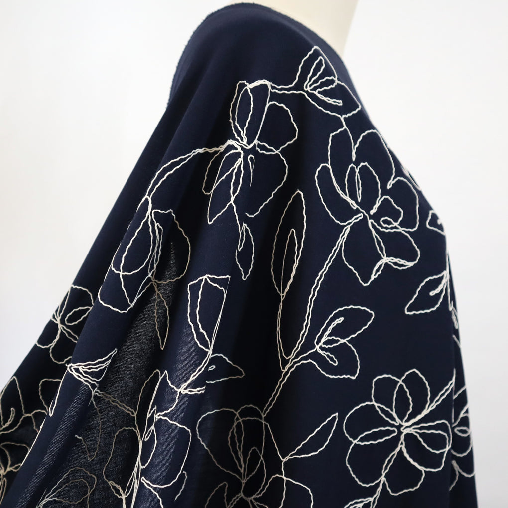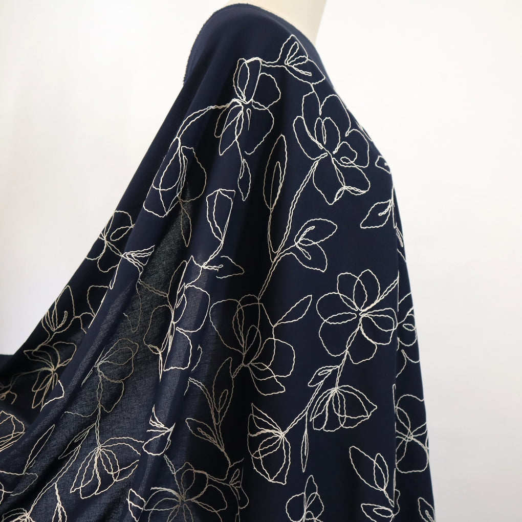 'Hadley' ~ Navy Embroidered Linen Viscose
